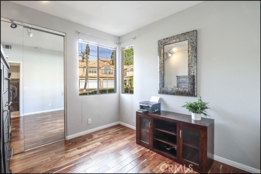 WHEN YOU'RE IN THIS HOME, IT FEELS MORE LIKE A SINGLE-FAMILY RESIDENCE THAN A CONDO! EXCEPTIONAL PROPERTY WITH AN AWESOME END UNIT LOCATION AND HUGE YARD! This highly sought-after Altisse property offers an open and airy floor plan with no stairs. The spacious living and dining room features hardwood floors, a cozy fireplace, and an abundance of windows that fill the space with natural light. A sliding door leads to the expansive and beautifully landscaped backyard, perfect for relaxation and entertaining. The delightful kitchen includes a newer and upgraded dishwasher, a stainless steel refrigerator (included), and a charming greenhouse window. The spacious master suite boasts a walk-in closet, sliding doors to the backyard, and a large master bathroom with a dual-sink vanity, upgraded fixtures, and plenty of space. The second bedroom and full second bathroom are equally inviting, and the full-size laundry area inside is equipped with a washer and dryer. Enjoy the convenience of direct access to the attached garage, along with ample nearby parking. The backyard is a standout feature, offering a large patio area, tastefully landscaped planters, fruit trees, patio furniture, a fire pit, and a Weber BBQ (included). Plus, there’s no one directly behind the property, ensuring privacy for your outdoor enjoyment. All this, combined with a resort-style community pool and spa, highly sought-after schools, and excellent proximity to Aliso Viejo Town Center with shops, restaurants, and entertainment. Easy access to the toll road (73), beach (via 133), and nearby hiking, biking, and nature trails make this property a rare find!
