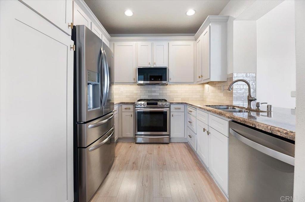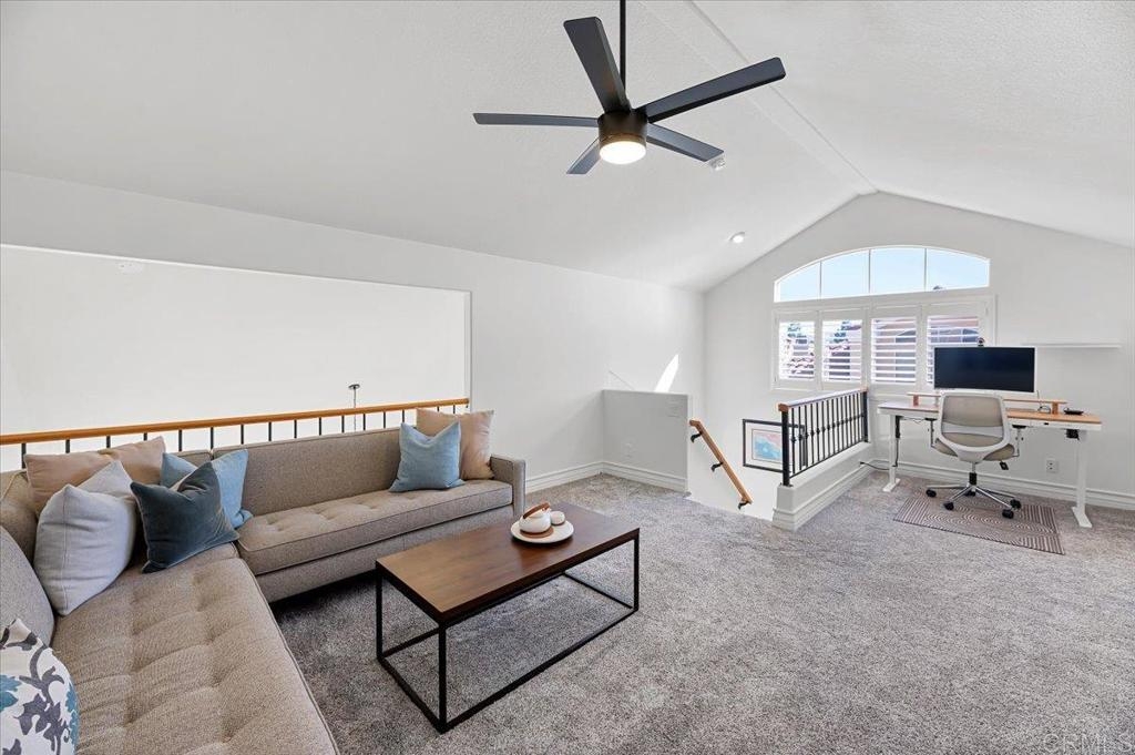 This turnkey end-unit is located in the highly desirable Applause condominium community—known for its beautifully maintained grounds, vibrant landscaping, and ample guest parking. The home features two bedrooms, two bathrooms, and a spacious loft, all enhanced by vaulted ceilings that create an airy, open feel filled with natural light. The main living area is generous in size, making it ideal for entertaining family and friends. Both bedrooms are conveniently located on the main floor, offering the comfort of single-level living. Upstairs, the large loft offers two distinct spaces—one that can easily be converted into a third bedroom and another perfectly suited for a home office. The home includes newer vinyl plank flooring throughout, and the kitchen and bathrooms have been tastefully updated. The entire community was re-piped in 2015, and the pool, spa, and surrounding common areas are receiving a major refresh in November. Conveniently situated near freeways, toll roads, parks, shopping, theaters, local beaches, wilderness trails, and award-winning schools, this home offers both comfort and accessibility. Don’t miss the opportunity to enjoy life in the beautiful Applause community of Aliso Viejo!
