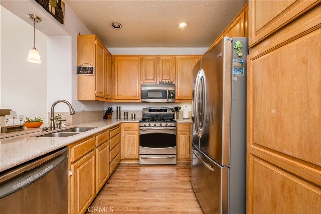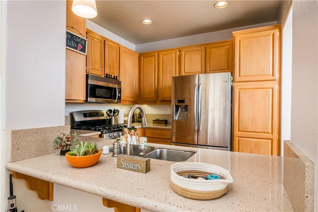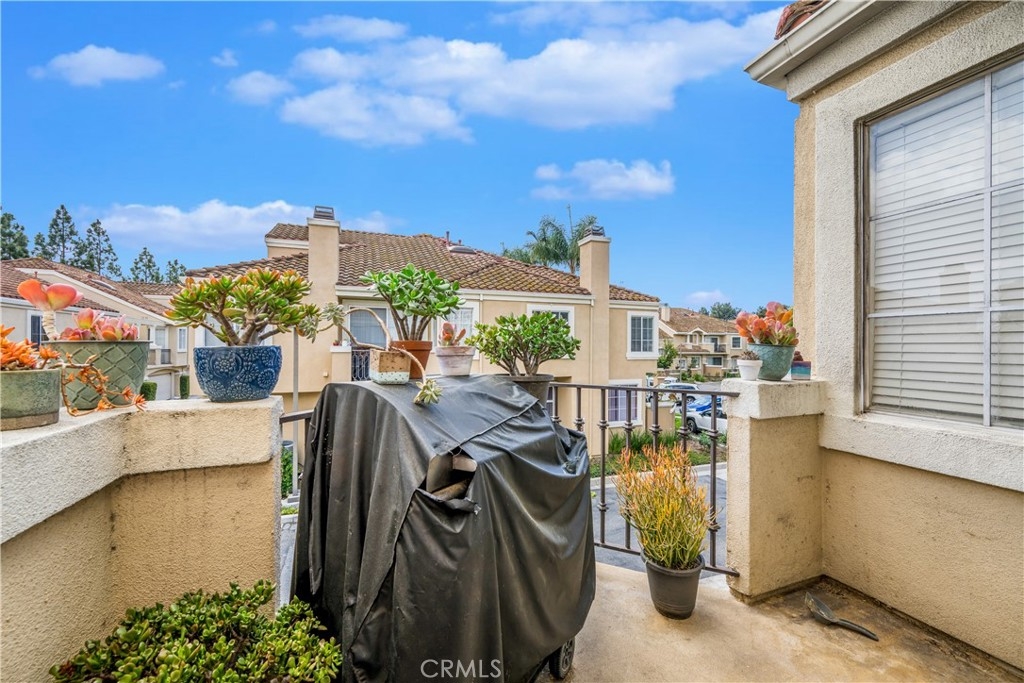 An open and airy end-unit condominium in the heart of Aliso Viejo with easy access to the area’s conveniences. The efficient floor plan features a large living area with a dining section, high ceilings, abundant light, a sizable balcony, and a fireplace. The adjacent kitchen is open and offers plentiful storage, stainless steel appliances, and a breakfast counter. Both of the bedrooms are located on the main level, with the primary suite boasting a private deck, a large bathroom, and a spacious walk-in closet. A huge upper floor loft could easily serve as a secondary living area, a home office, or sleeping quarters. Additional highlights include a privacy gate with a front patio and an attached two-car garage. While the location is quiet, it features convenient access to everything the area has to offer: the Aliso Viejo Town Center with its grocery store, shops, and a movie theater is just across the street from the community. Proximity to local beaches and hiking trails as well as the 73 toll road further add to the appeal.