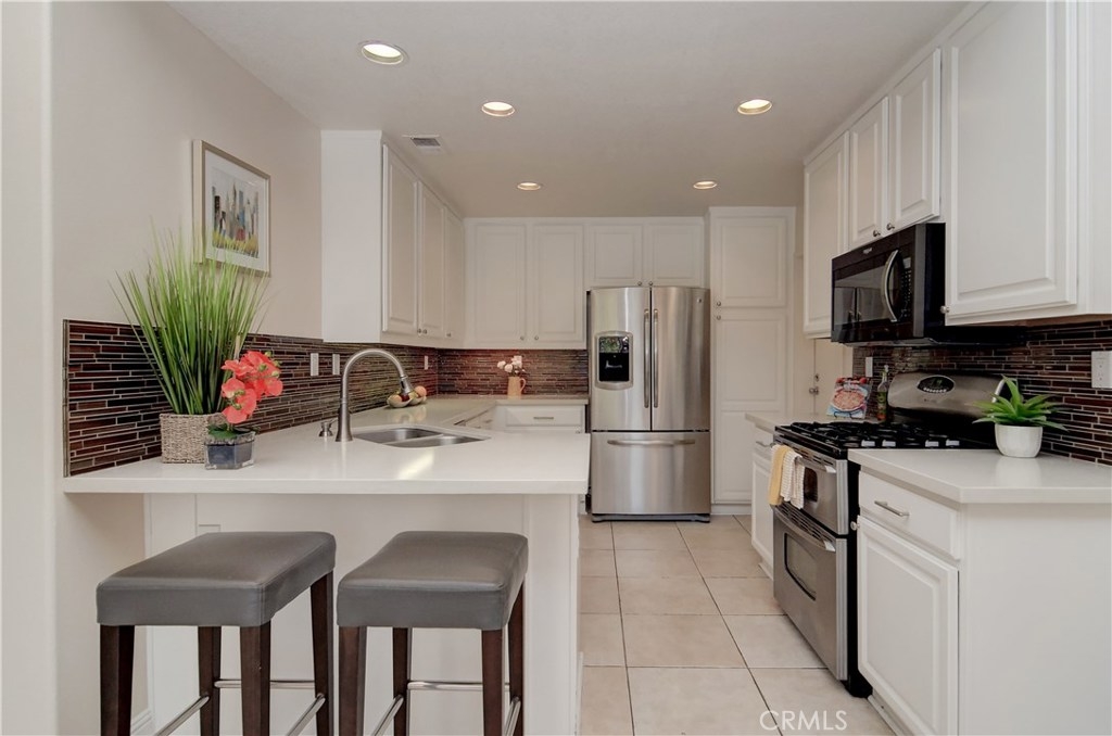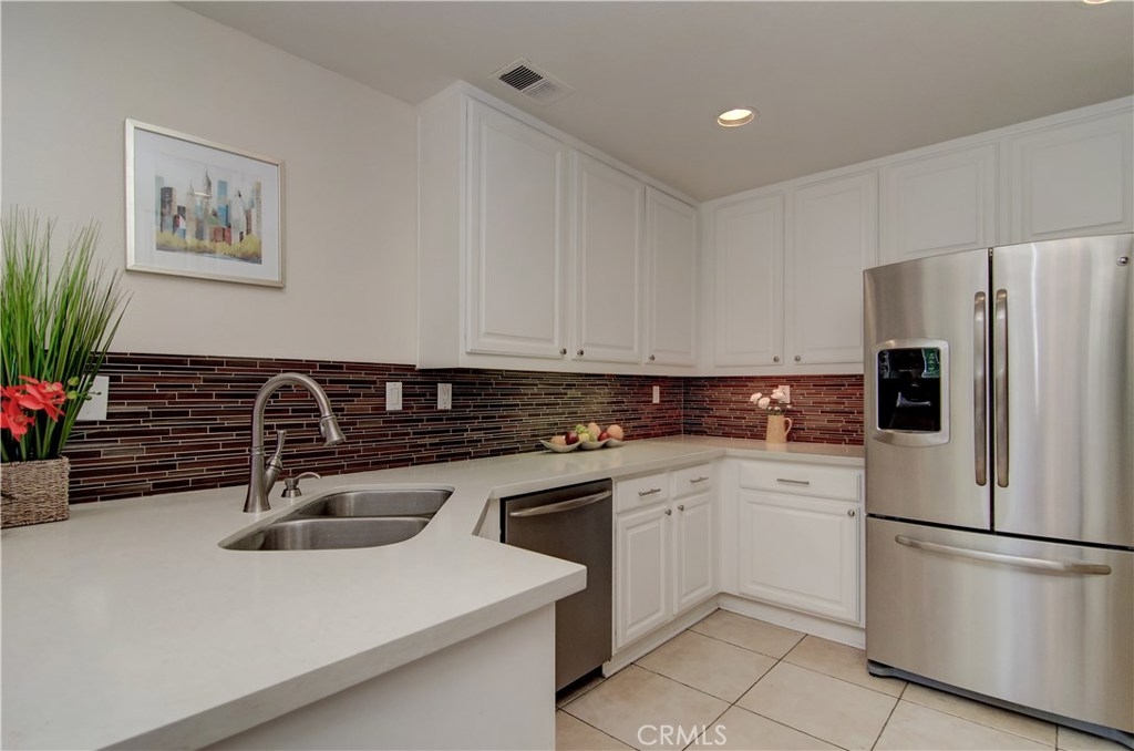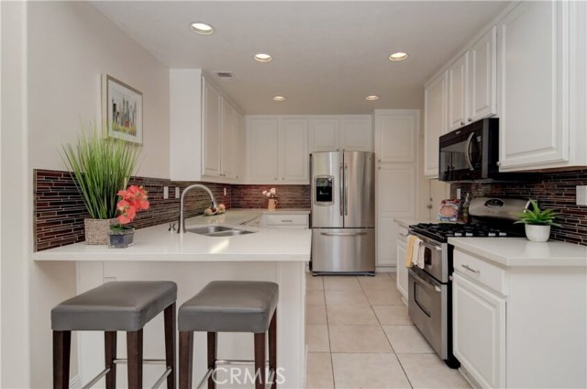Cool URBAN VIBE in the heart of the OC! Huge END UNIT townhome in one of Aliso Viejo's most popular neighborhoods. The moment you step into this home, the volume of space and light, plus AMAZING ARCHITECTURAL DETAILS will greet you as a WOW. The super-versatile floor plan allows for entertaining on a grand scale, or just a quiet evening by the FIREPLACE with a good book or movie. Spacious GREAT ROOM has plenty of room for many furniture arrangements, plus bar area and large slider to patio. FORMAL DINING SPACE can easily double as media center for BIG screen TV or home office. REMODELED KITCHEN has loads of bright white cabinetry, quartz counters, high-end stainless appliances, breakfast bar and is open to large family space with additional slider to patio. The upstairs layout offers utmost privacy between Master suite and additional bedrooms. Master offers a huge bedroom, large WALK-IN CLOSET and roomy bath with dual sink vanity, giant soaking tub, and contemporary barn door. Secondary bedrooms have large wardrobe closets and are steps to gorgeous, remodeled hall bath. There are so many great features here including separate laundry area, OVERSIZE TWO CAR GARAGE, hard surface flooring throughout lower level and near new HVAC system. PRIVATE PATIO is a nice place to relax and watch the world go by...great energy here...Convenient location is WALKING DISTANCE TO EVERYTHING you need at Aliso Town Center, including movies, restaurants, and shopping. You'll love the vibe!