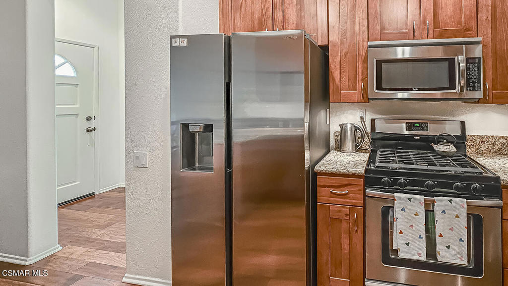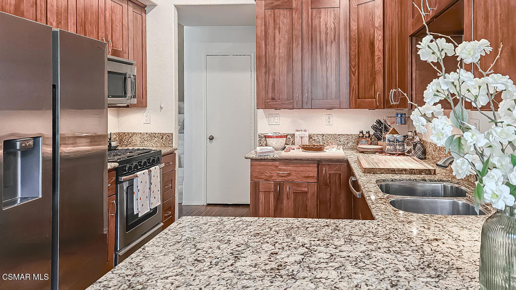 Welcome home to the Prestigious ''Applause'' Townhome Condominium. Extensively remodeled two-story, in a highly desirable location.Easy access to the freeway, close distance to ''Aliso Viejo Town Center'' where you'll find many popular stores and restaurants i.e. HomeGoods/Barnes & Noble/PetSmart/Habit/Chick-fil-A/Opah Restaurant & Bar, Edwards Cinemas and it's less than half a mile away to ''Ranch 99 Market.'' The Applause tract is so popular it's rarely on the market. The property is located away from busy streets, with plenty of natural light and two skylights with wonderfully spacious floor plan. Move-in condition. This community is well cared for. From the manicured green belts and clean grounds, well-lit walkways to the ample guest parking, and of course the added bonus of a courtesy pet waste station... for you animal lovers out there. The property offers an oversized private front patio, most ideal for entertaining. For those of you with a passion for vegetable gardens, there is even a designated space to do just that. There are two slider patio doors; one oversized from the living room and another access point from the kitchen - it helps bring the great outdoors in... when you are entertaining and or just a little extra sunshine after a busy week when you are unwinding. You'll find this place feels like home. Love the sophisticated upgrades:From the upgraded wood-like hardwood flooring throughout the downstairs area to the newly installed premium barber carpeting and padding throughout the upstairs. The property offers a beautiful, vaulted ceiling in the living room with added vaulted picture windows on top. Spacious living room, with a formal dining area that can sit up to 6 comfortably (currently set as a 4 top). A cozy corner fireplace for those cooler nights. Just around the corner, you'll appreciate the upgraded modern kitchen, granite countertop, and upgraded cabinets with two separate carousel trays (one - upper cabinet, and another set in the lower cabinets) to help keep you organized. Along with Stainless steel appliances and a breakfast bar. Downstairs offers a half bath, to help accommodate your friends and family, without access to the bedroom quarters upstairs.As you head upstairs, you'll love the spacious and well-thought-out bedrooms. The primary suite offers an double sink - full-size shower/ tub with an oversized walk-in closet and toilet. Step down to your sleeping quarters, spacious and inviting...aah... and you'll love the added feature of the private balcony. The second bedroom also offers its own ensuite bathroom (shower/ tub), and an oversized closet with built-in shelves to help keep you organized. There is a direct access full-size 2-car garage.The laundry area is located in the garage. Community offers pool, spa HOA includes trash and water.*Please check with CC & R for all the rules and restrictions prior to closing of Escrow.