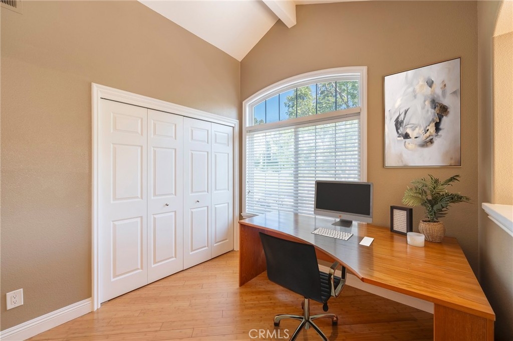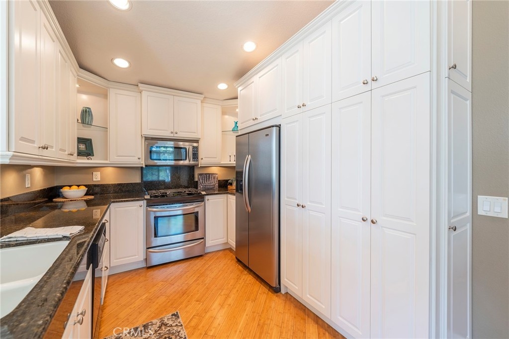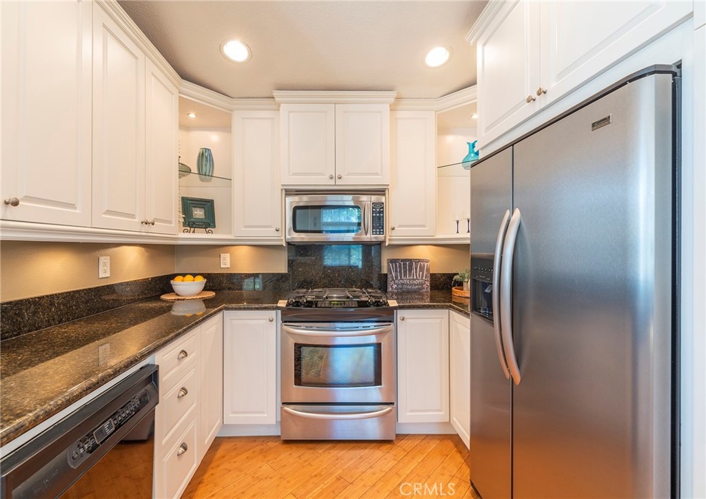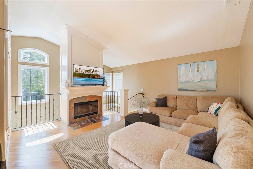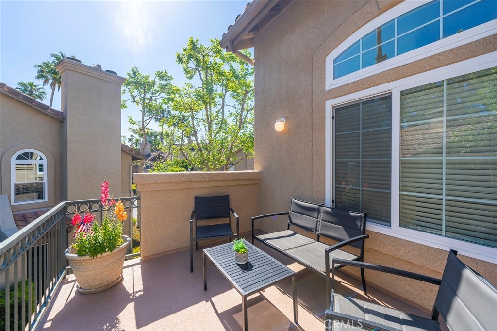 12 Hillgate Place Aliso Veijo 2 beds* 2 baths* 1027 square feet $749,900 12 Hillgate Place, Aliso Viejo - $749,900 Discover the allure of this exquisite upstairs, end unit condo nestled within the prestigious community of Calabria in beautiful Aliso Viejo. Boasting 2 beds, 2 baths, and 1027 square feet of luxury living space, this residence exudes privacy and brightness, offering captivating views of trees and hills from its elevated vantage point. Step inside to be greeted by elegant bamboo floors in the inviting downstairs entry. Enjoy the convenience of direct access from your oversized one-car garage, complete with a private laundry area and storage loft. Ascend the winding stairs to unveil a bright, open floor plan enhanced by upgraded wrought iron railings, a remodeled fireplace, and lofty ceilings. Indulge in the perfect balance of sunlight on the beautiful northeast-facing balcony, accessible from the living area. The tastefully remodeled kitchen features upgraded cabinetry, counters, and appliances, seamlessly flowing into the living room. Flexibility abounds with the second bedroom, currently utilized as a home office but easily convertible to an enclosed private bedroom. The hall bath has been beautifully remodeled with a step-in shower and frameless shower door. Retreat to the primary suite, highlighted by vaulted ceilings and a stunning private bath with dual sinks, a large soaking tub, and a tiled shower. Additional highlights include a spacious walk-in closet with an upgraded organization system and dual paned energy efficient windows which not only save on energy costs but also insulate the home for noise reduction. Enjoy the perks of a low HOA fee ($352/month), granting access to desirable amenities such as a pool area and meticulous neighborhood upkeep. Experience luxury living at its finest - schedule your viewing today!