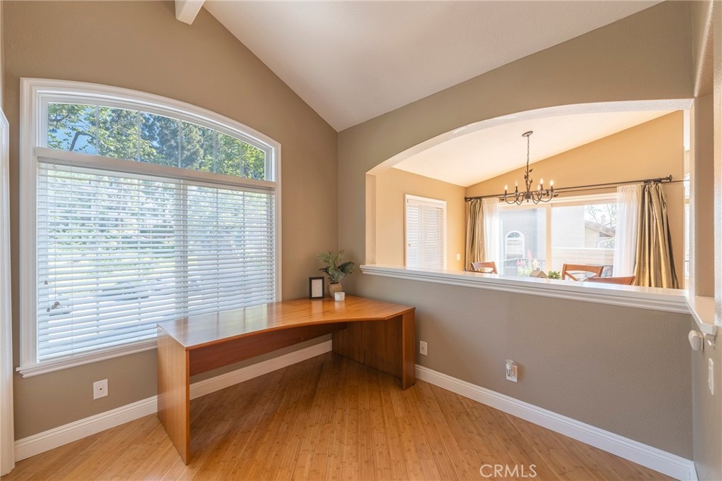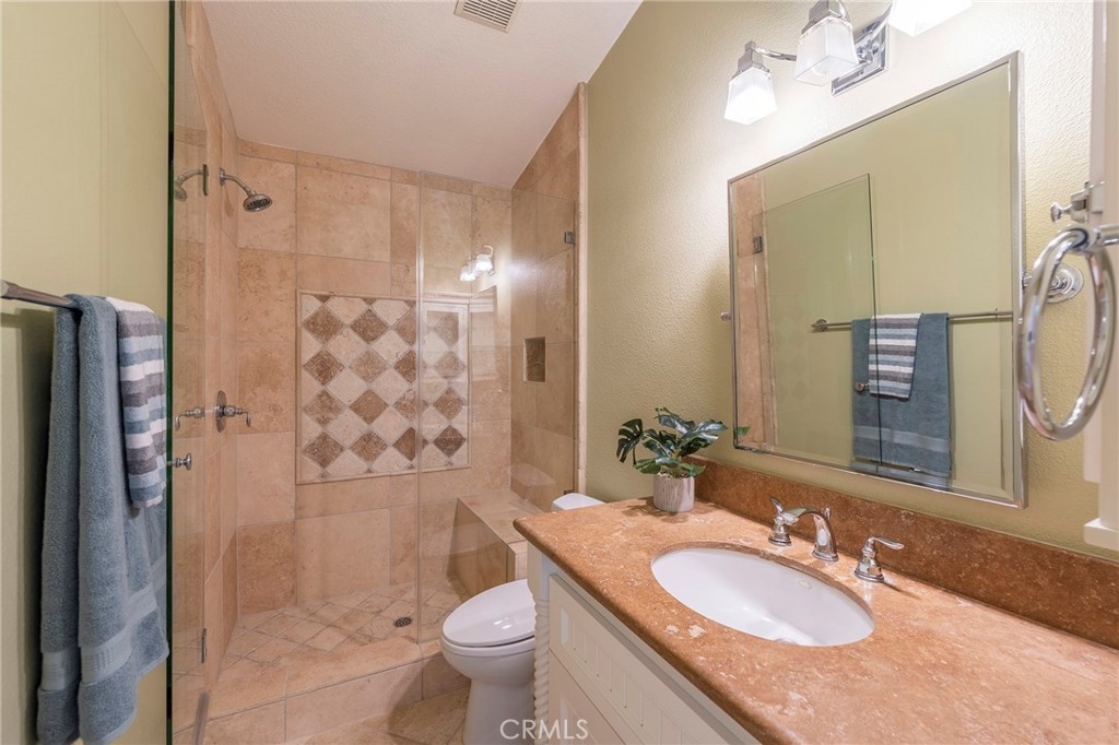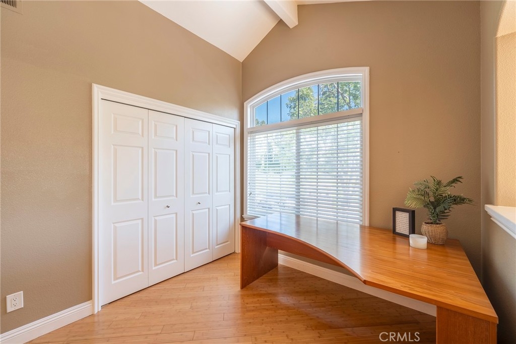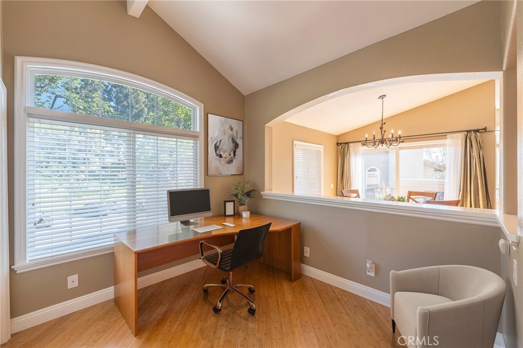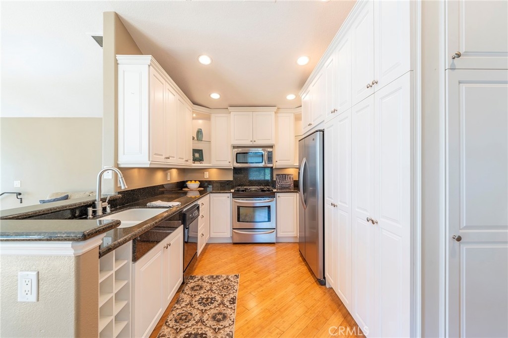 12 Hillgate Place Aliso Veijo 2 beds* 2 baths* 1027 square feet $749,900 12 Hillgate Place, Aliso Viejo - $749,900 Discover the allure of this exquisite upstairs, end unit condo nestled within the prestigious community of Calabria in beautiful Aliso Viejo. Boasting 2 beds, 2 baths, and 1027 square feet of luxury living space, this residence exudes privacy and brightness, offering captivating views of trees and hills from its elevated vantage point. Step inside to be greeted by elegant bamboo floors in the inviting downstairs entry. Enjoy the convenience of direct access from your oversized one-car garage, complete with a private laundry area and storage loft. Ascend the winding stairs to unveil a bright, open floor plan enhanced by upgraded wrought iron railings, a remodeled fireplace, and lofty ceilings. Indulge in the perfect balance of sunlight on the beautiful northeast-facing balcony, accessible from the living area. The tastefully remodeled kitchen features upgraded cabinetry, counters, and appliances, seamlessly flowing into the living room. Flexibility abounds with the second bedroom, currently utilized as a home office but easily convertible to an enclosed private bedroom. The hall bath has been beautifully remodeled with a step-in shower and frameless shower door. Retreat to the primary suite, highlighted by vaulted ceilings and a stunning private bath with dual sinks, a large soaking tub, and a tiled shower. Additional highlights include a spacious walk-in closet with an upgraded organization system and dual paned energy efficient windows which not only save on energy costs but also insulate the home for noise reduction. Enjoy the perks of a low HOA fee ($352/month), granting access to desirable amenities such as a pool area and meticulous neighborhood upkeep. Experience luxury living at its finest - schedule your viewing today!