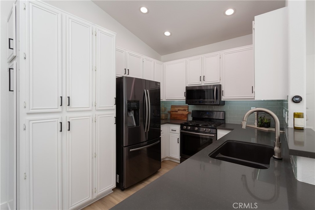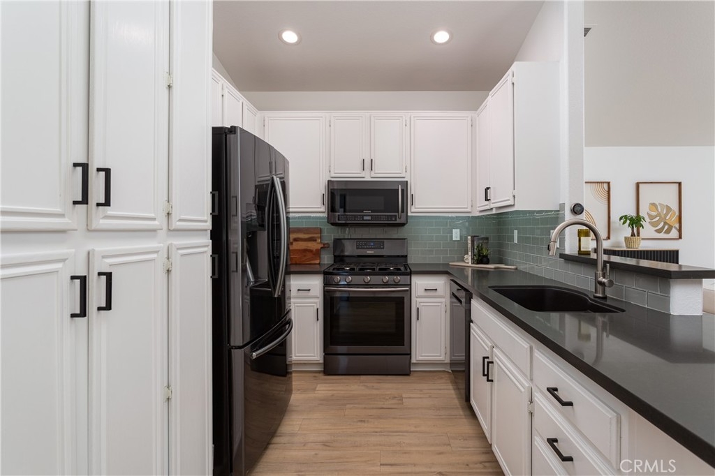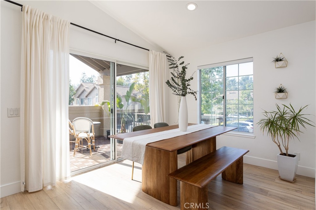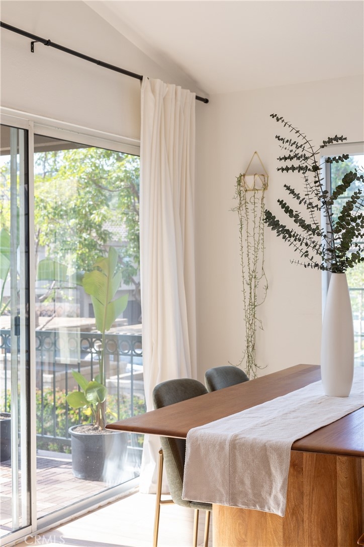 Welcome to this beautifully designed carriage style 2 bedroom 2 bath condo which offers an ideal living space for those seeking comfort, style and convenience. The bright and airy open concept layout creates a seamless flow between the living, dinning, and kitchen areas, making it perfect for both relaxation and entertaining. The spacious kitchen boasts Samsung appliances, quartz counters and plenty of storage. The large primary bedroom features a remodeled en-suite bath complete with walk-in shower and a walk-in closet with a custom California Closets installation. The secondary bedroom features high ceilings and built-ins, the perfect space for family, guests, or a home office. The secondary bathroom has been remodeled complete with its own walk-in shower. Off of the dinning room find a spacious covered deck with gas bbq hookup. Wide-plank LVP flooring throughout, recessed lighting, automatic shades on all of the windows, an attached direct-access one-car garage and laundry are just some of the features you won’t want to miss. The Calabria community provides residents with resort-style amenities, including a pool and spa. The property is within walking distance of highly rated schools and offers excellent proximity to Aliso Viejo Town Center, the 73 Toll Road, Laguna Beach (via 133), and nearby hiking, biking, and nature trails.