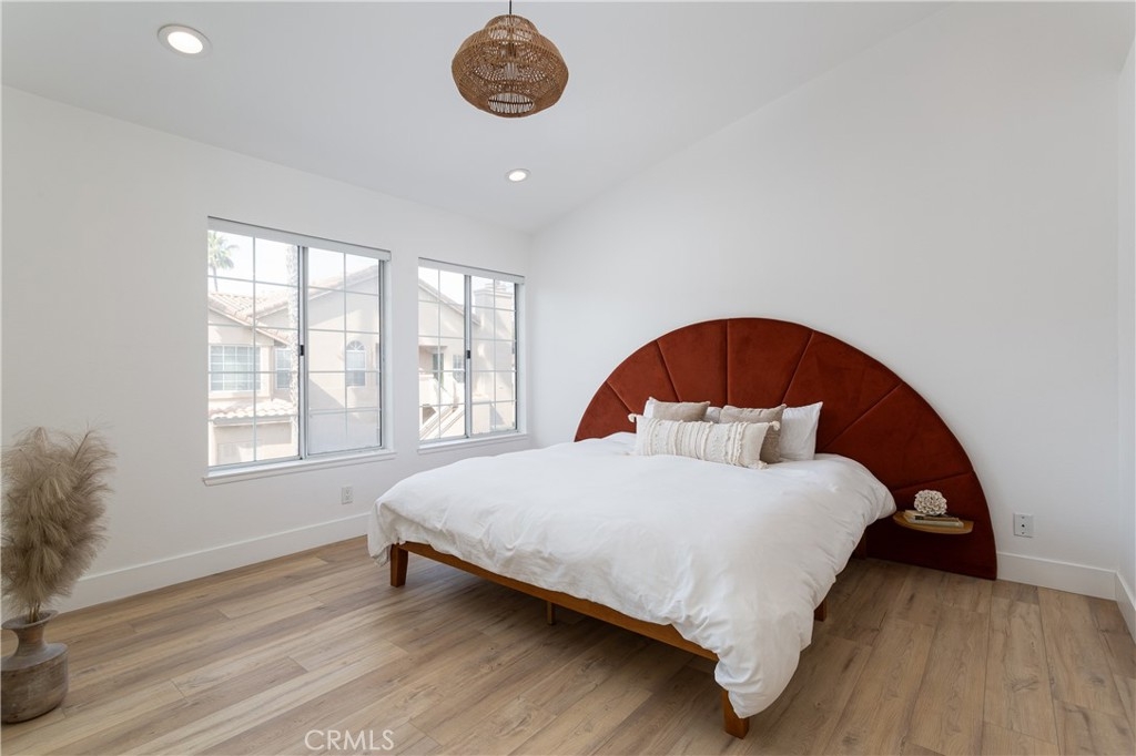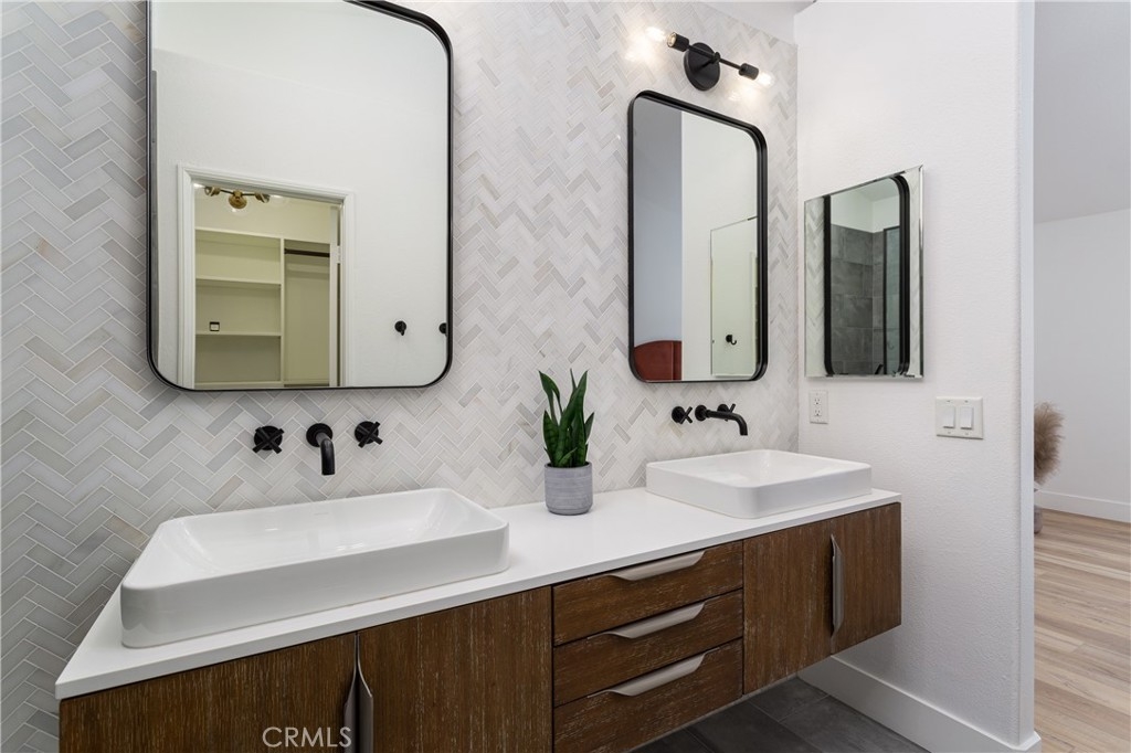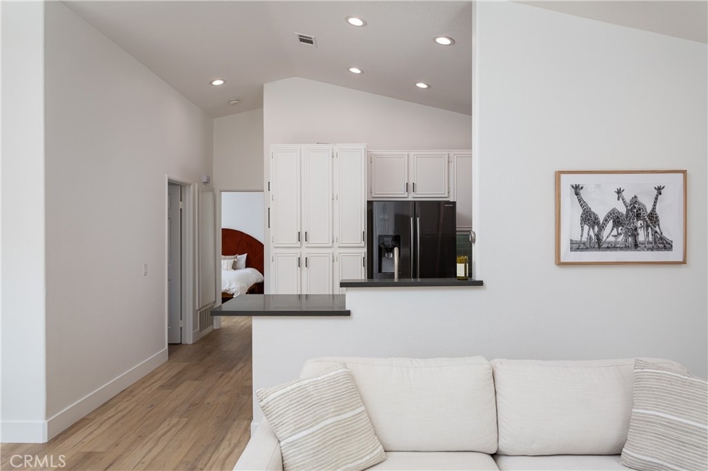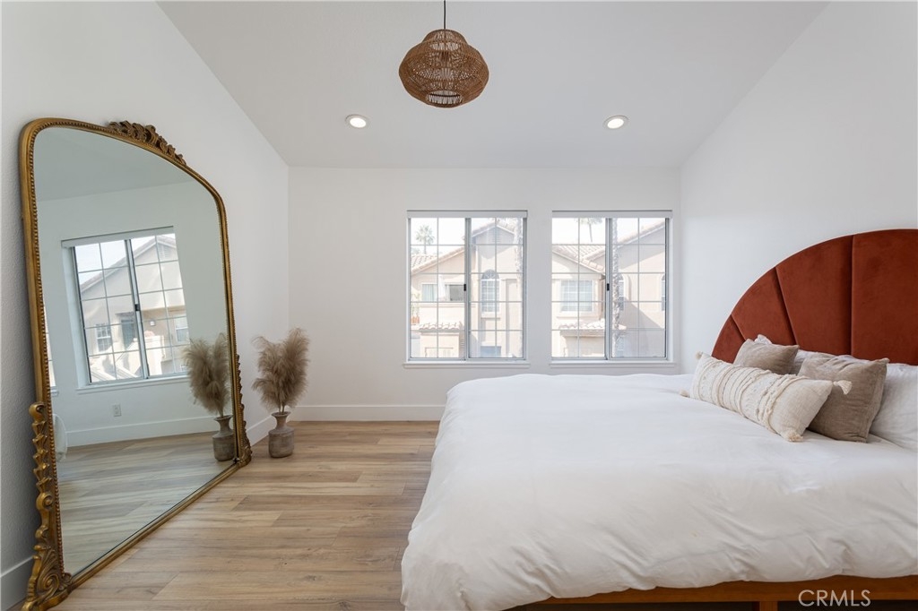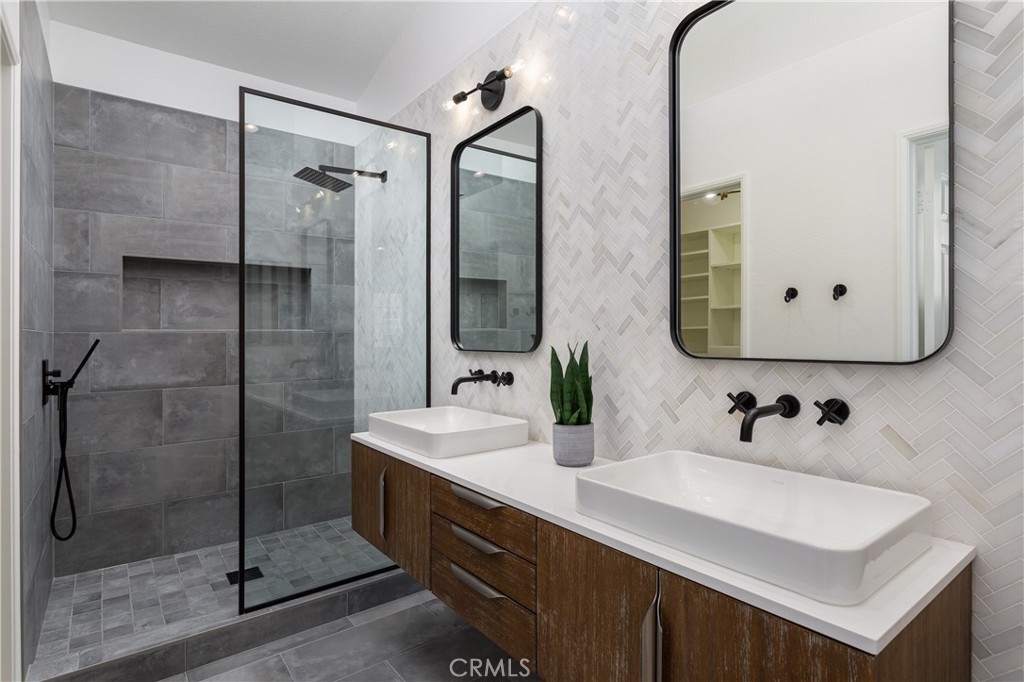 Welcome to this beautifully designed carriage style 2 bedroom 2 bath condo which offers an ideal living space for those seeking comfort, style and convenience. The bright and airy open concept layout creates a seamless flow between the living, dinning, and kitchen areas, making it perfect for both relaxation and entertaining. The spacious kitchen boasts Samsung appliances, quartz counters and plenty of storage. The large primary bedroom features a remodeled en-suite bath complete with walk-in shower and a walk-in closet with a custom California Closets installation. The secondary bedroom features high ceilings and built-ins, the perfect space for family, guests, or a home office. The secondary bathroom has been remodeled complete with its own walk-in shower. Off of the dinning room find a spacious covered deck with gas bbq hookup. Wide-plank LVP flooring throughout, recessed lighting, automatic shades on all of the windows, an attached direct-access one-car garage and laundry are just some of the features you won’t want to miss. The Calabria community provides residents with resort-style amenities, including a pool and spa. The property is within walking distance of highly rated schools and offers excellent proximity to Aliso Viejo Town Center, the 73 Toll Road, Laguna Beach (via 133), and nearby hiking, biking, and nature trails.