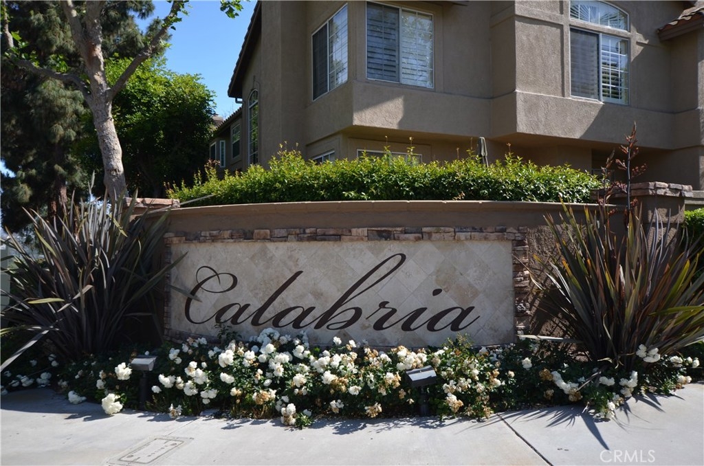 SINGLE LEVEL – NO STEPS! END UNIT in Calabria with a lush greenbelt location (not on the parking lot side of the building). Floor plan is very open and there are many nice windows. Cozy, gas fireplace. Create an outdoor room on your covered patio surrounded by lush greenery. Master bedroom has dual closets with mirrored wardrobe doors. Master bathroom has a large/oval soaking tub, dual sinks and a separate water closet. Larger interior laundry room with full-size washer/dryer, new flooring & plenty of storage. Air condenser is in a covered area, which has kept it in good shape. This home was just re-piped with PEX. Attached garage is extra deep and has a newer garage door, walk-in storage closet and overhead storage. Neighborhood tot lot/pool/spa is just a 1 minute walk away. Low HOA fee $295.00 per month. Low tax base and NO Mello Roos. Trash is included in HOA fee. This neighborhood sits in the heart of Aliso Viejo – walking distance to the Aliso Viejo Town Center/Grand Park, Starbucks, Target, Walmart, library, movie theatre, restaurants, parks, schools, Costco, Foxborough Park just down the hill and more. Quick access to the 73 Toll Rd and fantastic biking/hiking trails. Minutes away from some of the most beautiful beaches/resorts in California.