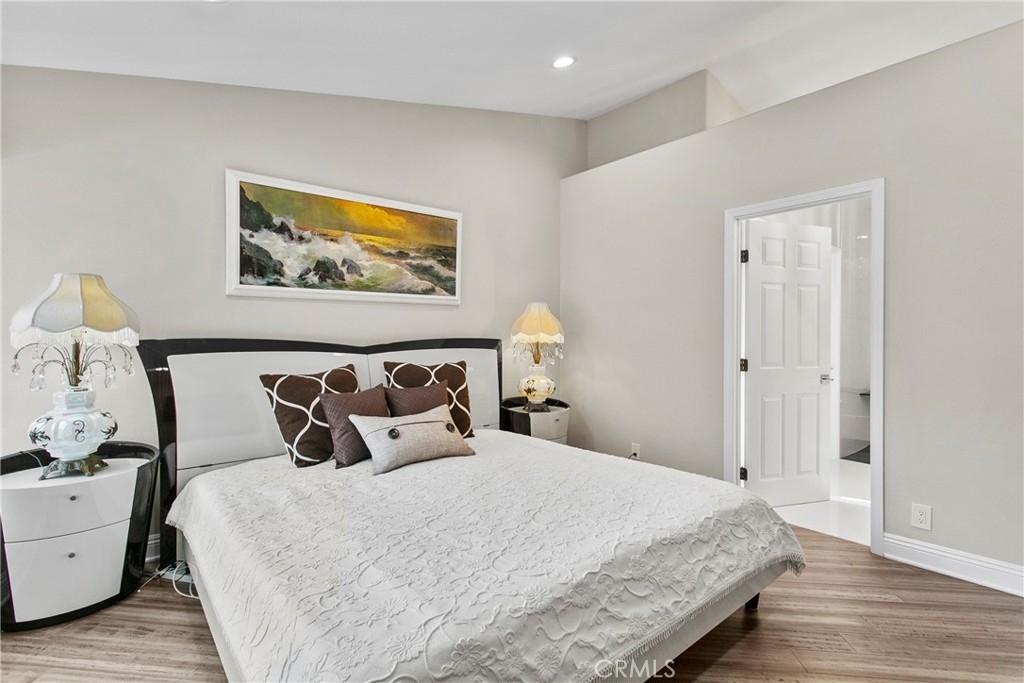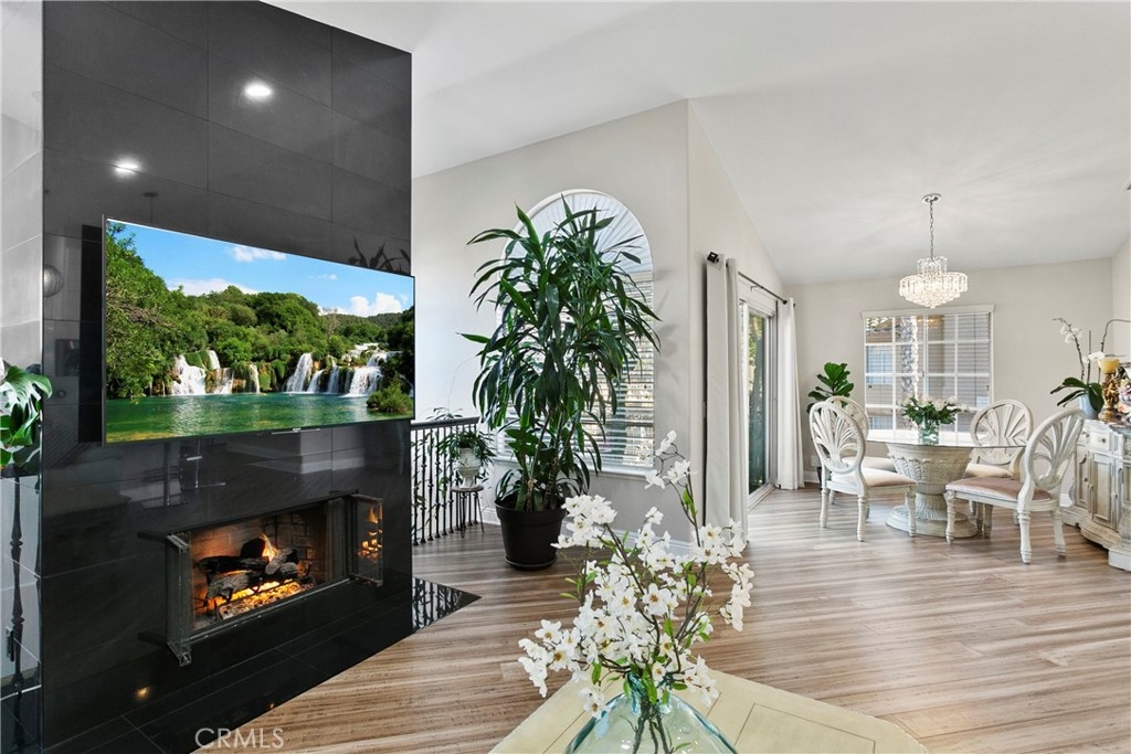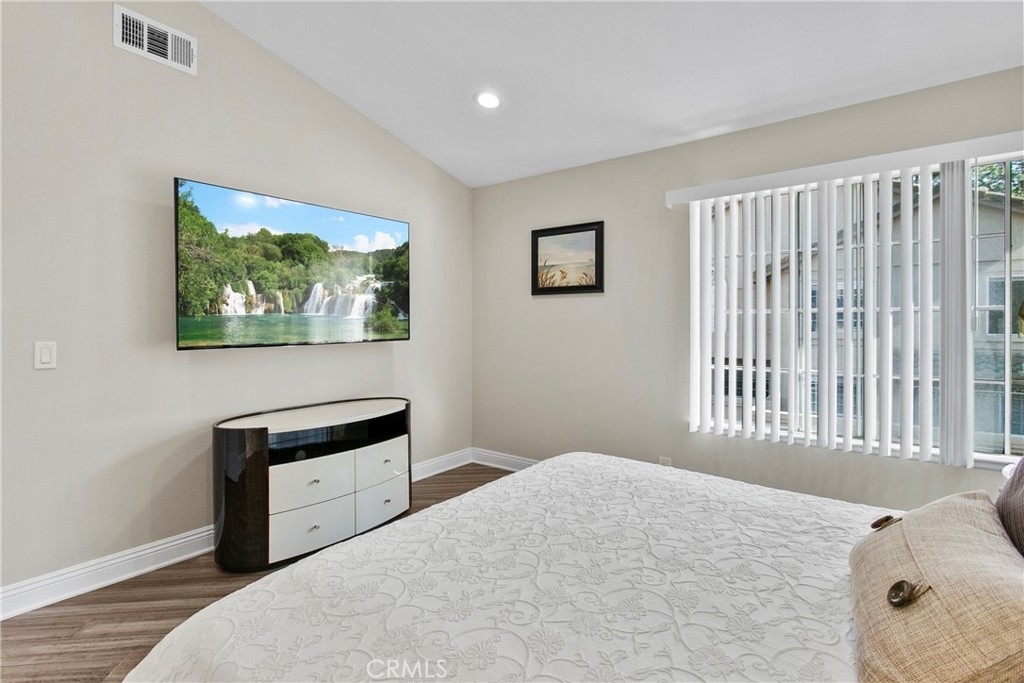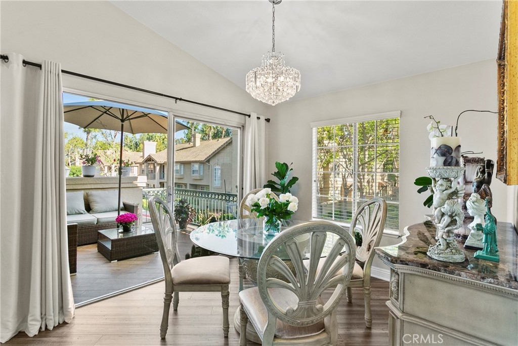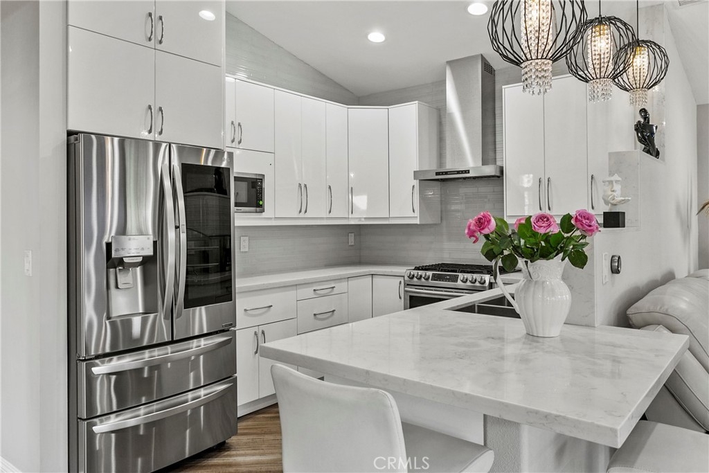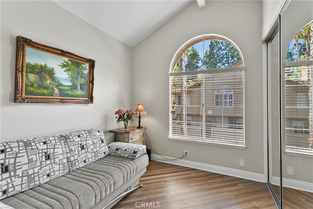 Stunning One of a Kind Townhome in the highly desirable Calabria community of Aliso Viejo! This beautifully remodeled impressive carriage corner unit with no one above or below offers an open concept layout with distinctive elegant accents and designer-inspired finishes. Corner location with large windows gets an abundance of natural sunlight throughout the entire day. Gourmet thoughtfully designed Kitchen boasts luxe quartz counters and island, custom white cabinets with soft closing drawers, recessed lights, newer quality stainless steel appliances, water filtration system. Spacious Living Room features dramatic vaulted ceilings, recessed lights and a stylish modern fireplace. The Dining Room opens to a generous size balcony providing a wonderful outdoor retreat perfect for dining al fresco and entertaining. Just down the hall you have a Bedroom with mirrored closet doors and vaulted ceilings. Full Hallway Bathroom is located across the way with a shower over the new tub. Elegant Primary Suite features high ceilings, walk-in closet with a built-in organizer, luxurious spa-like Bathroom with walk-in shower, lots of cabinet space. Both bathrooms are fully remodeled with tiled porcelain tub/shower walls, high quality faucets and plumbing fixtures, white high gloss custom vanities with plenty of storage space. Other distinctive highlights include designer paint, hardwood flooring throughout, recessed lights, gorgeous light fixtures, high ceilings throughout, central A/C, one-car direct access garage with laundry area and ample storage space. This entire property is in immaculate move-in condition and gives a sense of comfort, style and elegance you will be proud to own. Enjoy a wonderful resort-like Calabria community with a large pool and spa amenities, surrounded by parks and hiking trails. Ideally located only a few minutes down the road to the Aliso Viejo Town Center, this home provides easy access to a variety of amenities, including shops, dining, a movie theater, Costco, and nearby high-ranking schools. Fabulous beaches and luxury resorts are only a short drive away! Convenient access to freeways and toll roads. Truly a rare find! NO MELLO ROOS! Welcome Home!