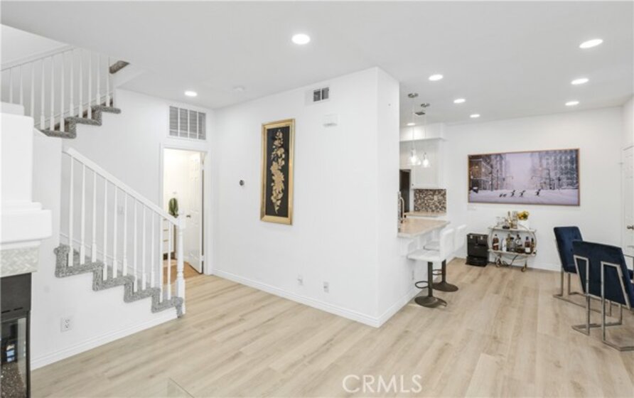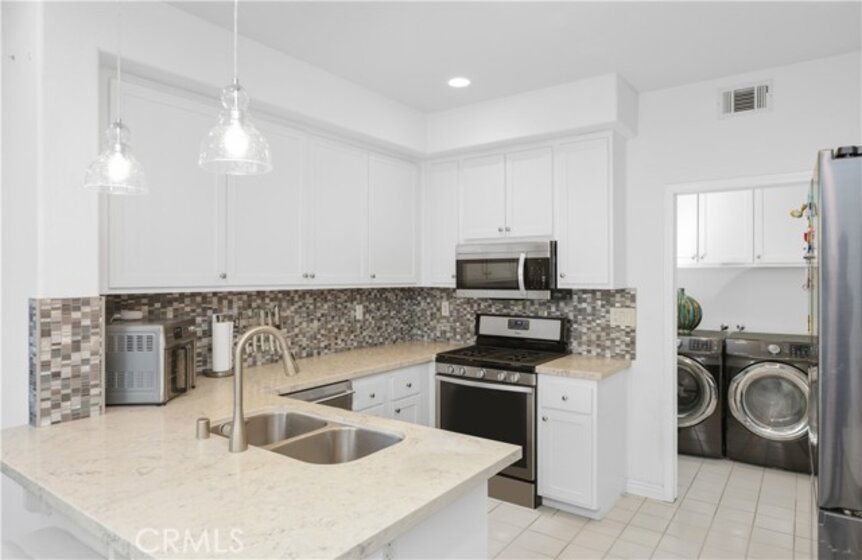Experience refined living in this elegantly appointed 2-bedroom, 2.5-bath, two-story townhouse in the prestigious Calabria community of Aliso Viejo. Thoughtful upgrades include fully remodeled downstairs powder room, plantation shutters, sophisticated laminate wood flooring, and a gourmet kitchen adorned with quartz countertops, designer tile backsplash, stainless steel appliances, and exquisite lighting. Sun-filled interiors flow into a chic living area highlighted by a fireplace framed in natural stone, marble, and glass. Upstairs, the serene primary suite boasts vaulted ceilings, a beautifully organized walk-in closet, and a spa-inspired ensuite with dual vanities and Moen fixtures. Plush, premium carpeting enhances the upper level, creating a tranquil retreat. A private patio offers an intimate setting for al fresco dining and garden relaxation. Additional luxuries include a direct-access garage with epoxy flooring and overhead storage, a full-size laundry room, stylish pendant and recessed lighting, and a newer hot water heater. Residents of Calabria enjoy resort-style pool and spa amenities surrounded by picturesque parks and scenic trails. Ideally situated near The Toll Roads, top-rated schools, the Aliso Viejo Towne Center, fine dining, shopping, entertainment, and minutes from world-class beaches and luxury coastal resorts. Low tax rate and NO Mello-Roos