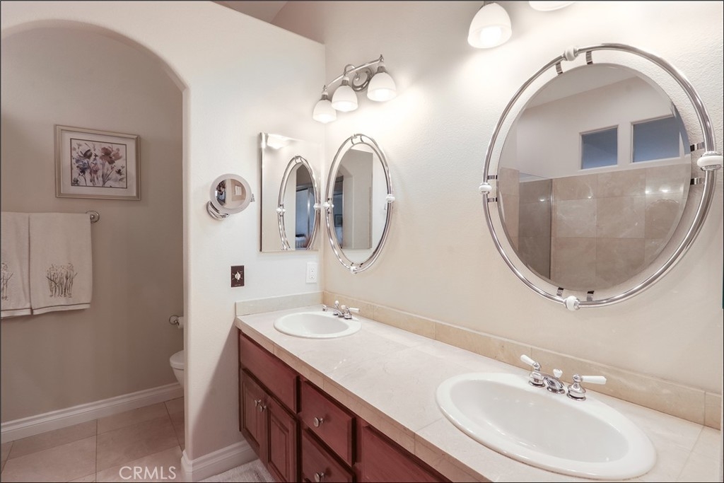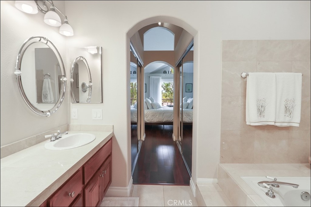 SPECTACULAR CUL-DE-SAC LOCATION WITH PANORAMIC VIEWS AND HIGHLY SOUGHT AFTER FLOOR PLAN WITH HIGH CEILINGS AND LOFT! Large foyer leading to a spacious living room with two-story ceilings and lots of windows to bring in plenty of natural light, large dining room, dual sided fireplace and sliding doors leading to the large and inviting patio with stone work, planters, covered patio area and spectacular views! Stunning Crema Marfil marble and rich Brazilian cherry hardwood flooring seamlessly come together and make the ultimate statement of elegance. Chef's kitchen with KitchenAid blacksteel appliances, 1 year new refrigerator and upgraded American cherry cabinets. Upgraded lighting and dimmer switches, upgraded HVAC system new as of July 2023, PEX Repiping as of 2020, upgraded dual glazed windows, upgraded Bradford White water heater, Halo 5 whole house water filtration system and so much more! This award winning floor plan offers a main floor office, den or can be the 3rd bedroom and bathroom with upgraded vanity, marble surround walk-in shower with frameless glass enclosure and upgraded fixtures. Open staircase leading to the spacious second story featuring a loft which is perfect as home office or den. Spacious master suite with vaulted ceilings and sliding door to the private deck with breathtaking views, walk-in closet and second closet, custom organizers and a spacious master bathroom with large vanity, dual sinks, separate tub and walk-in shower featuring marble surround, frameless glass enclosure and upgraded fixtures. Large 2nd bedroom with walk-in closet, built-in organizer and full second bathroom with tub and shower, glass enclosure and upgraded fixtures. Convenient inside laundry room with full size washer and dryer area and ample linen cabinets. Two car attached garage with custom cabinets and epoxy coated flooring. This property has it all plus the awesome California Renaissence community with resort style pool and spa, lots of greenbelts, easy toll road (73) and beach access (via 133), highly sought after schools, excellent proximity to Aliso Viejo Town Center, shops, restaurants and entertainment, within half a mile to the renowned Jack Nicklaus-designed golf course and nearby hiking, biking and nature trails!