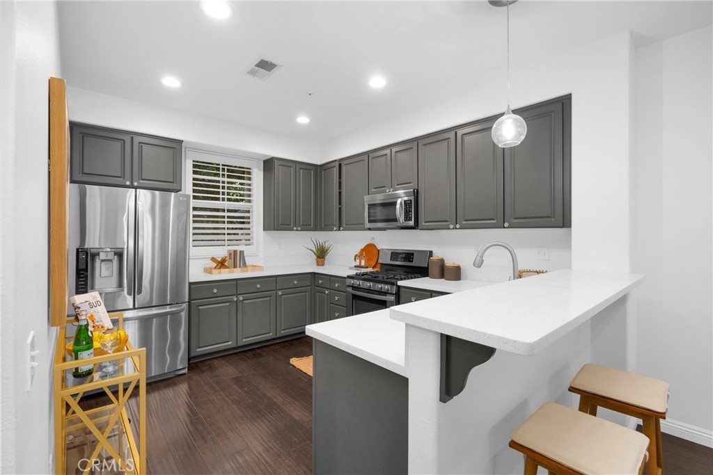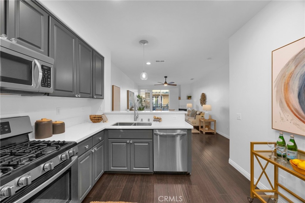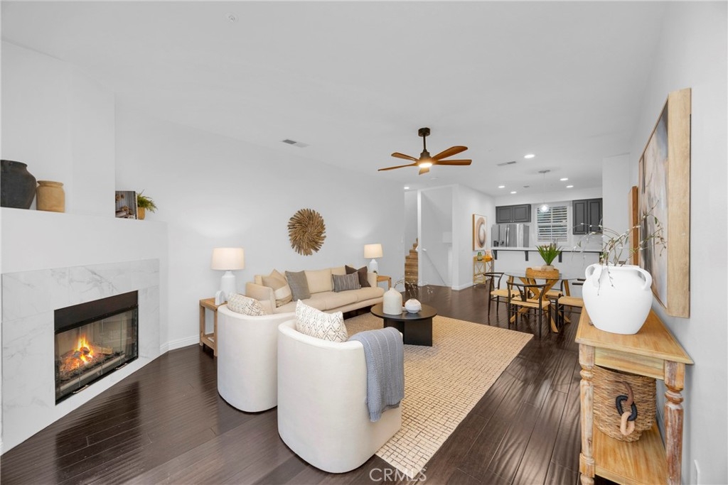 Beautiful 2 bedroom, 2.5 bath Camden Park townhome located in the heart of Aliso Viejo! This highly sought-after home fronts one of the community’s largest greenbelts and is just minutes from Aliso Viejo Town Center with dining, shopping, and entertainment. The open floor plan features a spacious living and dining room with plantation shutters, rich laminate wood flooring, cozy fireplace, and direct access to a private balcony. The upgraded kitchen offers stainless steel appliances, recessed lighting, and ample cabinet space. Upstairs, the primary suite boasts vaulted ceilings and a walk-in closet, with a secondary bedroom and full bath down the hall. Additional highlights include a downstairs powder room, direct-access two-car garage with laundry and extra storage. Residents of Camden Park enjoy access to the resort-style pool, spa, and BBQ area, plus easy access to nearby trails and just a short drive to world-class beaches!