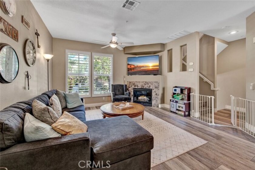 This radiant home, in the highly sought after Camden Park community, boasts a large media or hang out area with a purposeful dining area. The kitchen opens to a private balcony which provides natural bright light to enjoy breakfast, lunch & dinners at the oversized island. The modern appliances are easy on the eyes. The flooring is the desirable high quality laminate that looks exquisite. Heading upstairs to the top floor, you will find 2 large bedrooms with their own baths, walk in closet and a custom dedicated home office or education center away from distractions. Ground level provides a 2 car garage with epoxy floors, large storage and laundry area along with a beautiful half bath for your convenience. No Mello Roos