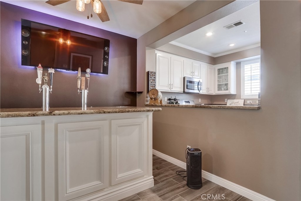 Stunning home in the Camden Park neighborhood. You step into the living-room featuring beautiful travertine floors, a cozy fireplace and wooden shutters. The soaring ceiling and large windows let in lots of natural light. The living-room opens to a customized entertainment area with a fully customized wet- bar with beer taps, refrigerators and more. The entertainment area flows into the kitchen and dining nook. The kitchen has granite counter-tops, stainless appliances, and lots of storage. The kitchen and dining nook open to the balcony. There is a half-bath off the entertainment area. The flooring throughout this level is beautiful wood-like tile. Upstairs there are two master suites. Both bedrooms have gorgeous hardwood floors, ceiling fans, and ensuite bathrooms. The community has a pool and spa, BBQ are, and kids playground. You’ll be located close to award-winning schools, great shopping centers, the beach and more. This beautiful townhome is a must see!