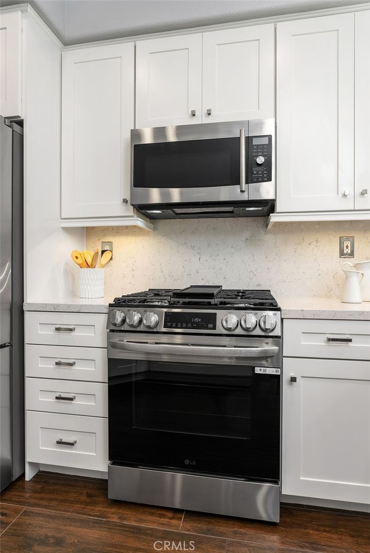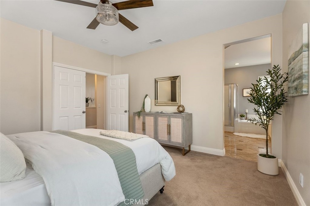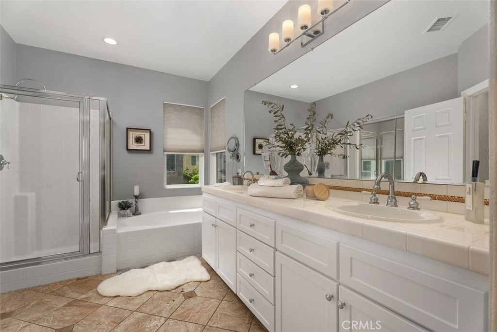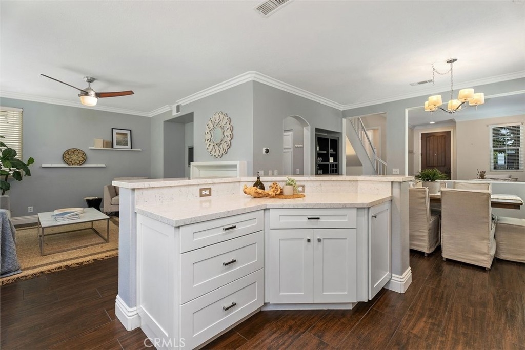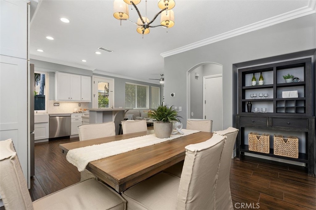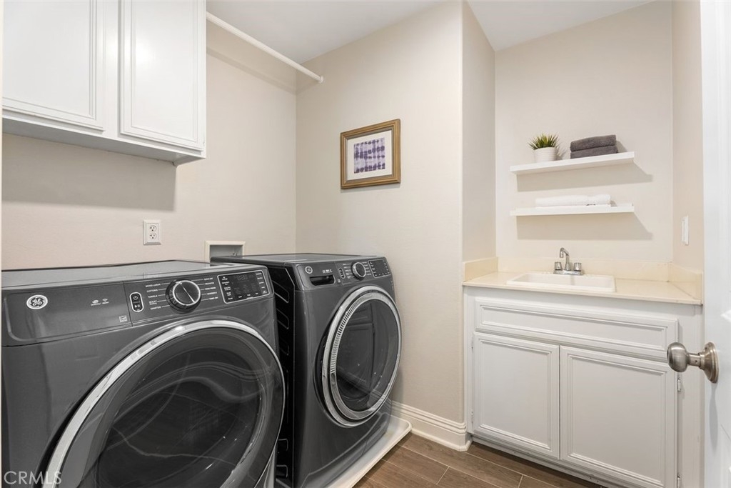 12 Seven Kings is a remodeled 3-bedroom plus office/loft filled with thoughtful touches. The downstairs includes wood-plank tile flooring and recessed lighting throughout uniting the open floor plan. The kitchen stands out with its bright white shaker-style cabinetry, quartz countertops, farm sink, and stainless steel appliances all open to the separate family room and dining room. A cute powder room with stylish vanity finishes off the first level. Upstairs, the primary bedroom with a double-door entry is en-suite to a primary bathroom with marble flooring, refinished cabinets, and extra-large walk-in closet with a locking jewelry drawer. The secondary bedrooms, which both have closet built-ins and ceiling fans, share a completely updated second bath including wood-plank tile flooring, Carrera marble countertops, and an intricate mosaic tile walled shower. If you're more into function over form, don't fret, upstairs the home also has a loft with office built-ins, an extra-large upstairs laundry room with cabinets and a sink, and loads of cabinet storage in the hallway. The home also has all newer dual-paned windows, PEX repiping, extensive built-ins in the garage, and a sizable, low-maintenance yard with synthetic grass and multiple gas lines. 12 Seven Kings is conveniently located a short walk to the community pool, and just outside the Village Cottages gates is Oak Park. The home is zoned for award-winning schools, including Canyon Vistas Elementary which is within walking distance. It is also a quick drive to the many shops and restaurants in the Aliso Viejo Town Center.