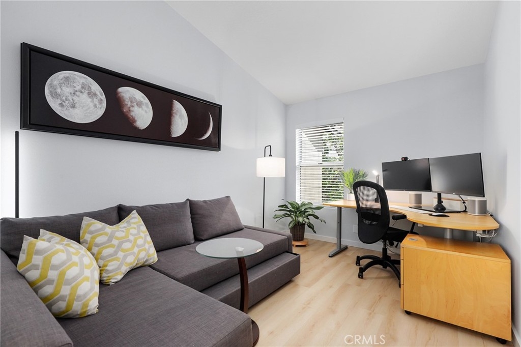 Welcome to 60 Meadowbrook, an immaculate home in the heart of Aliso Viejo. The inviting family room features a stylish accent wall and cozy fireplace, seamlessly opening to the dining area and kitchen. The kitchen boasts white cabinetry, quartz countertops with matching backsplash, stainless steel appliances, and direct access to the two-car attached garage with an extended driveway for extra parking. Sliding glass doors lead to a spacious and private backyard with low-maintenance artificial grass, perfect for entertaining or relaxing. A beautifully remodeled powder room completes the main level. Upstairs, the primary suite offers vaulted ceilings and a remodeled ensuite bathroom with a quartz vanity and walk-in shower. Two additional bedrooms share a remodeled full hall bathroom. Centrally located near Aliso Viejo Town Center, the 73 Toll Road, scenic trails, award-winning schools, and just a short drive to the beach—this home truly has it all!
