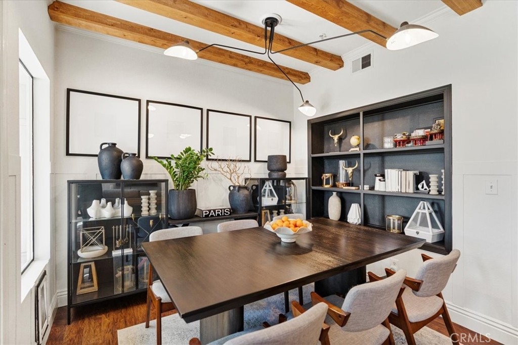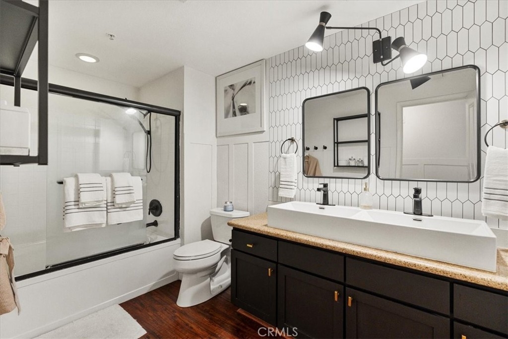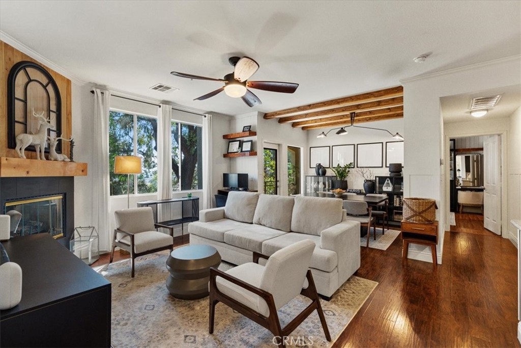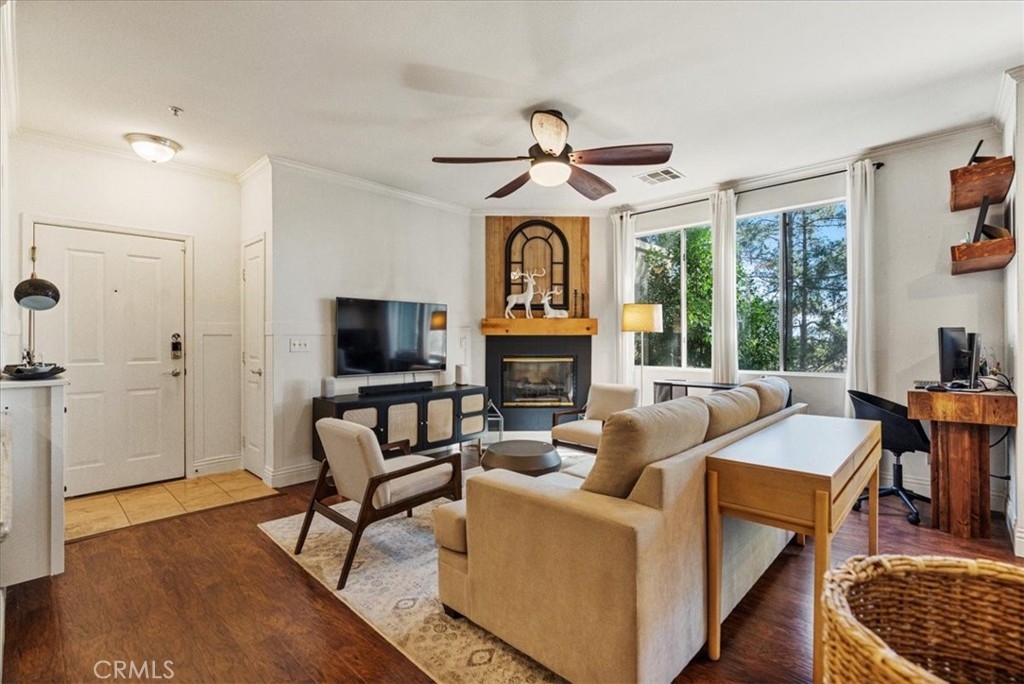 Welcome to this beautifully upgraded one-bedroom, one-bathroom condo in the highly sought-after Canyon Point community of Aliso Viejo. Designed with modern elegance, this home showcases laminate wood flooring, a sleek double vanity sink with side storage cabinets in the bathroom, custom accent wall moldings in the living area, hallway, bathroom, and charming wood ceiling beams in the dining area and bedroom. Additional built-in storage in the bedroom enhances functionality, while the freshly repainted interior and a new water heater ensure move-in-ready convenience. The kitchen and bathroom cabinets have also been refreshed for a contemporary, polished look. Enjoy resort-style amenities, including a pool, spa, fitness center, clubhouse, and night patrol security. This condo includes one assigned parking space with ample guest parking in a pet-friendly community. Perfectly situated near shopping, dining, top-rated schools, and easy freeway access, this turnkey home is a fantastic opportunity. Don’t miss out—schedule your private showing today!