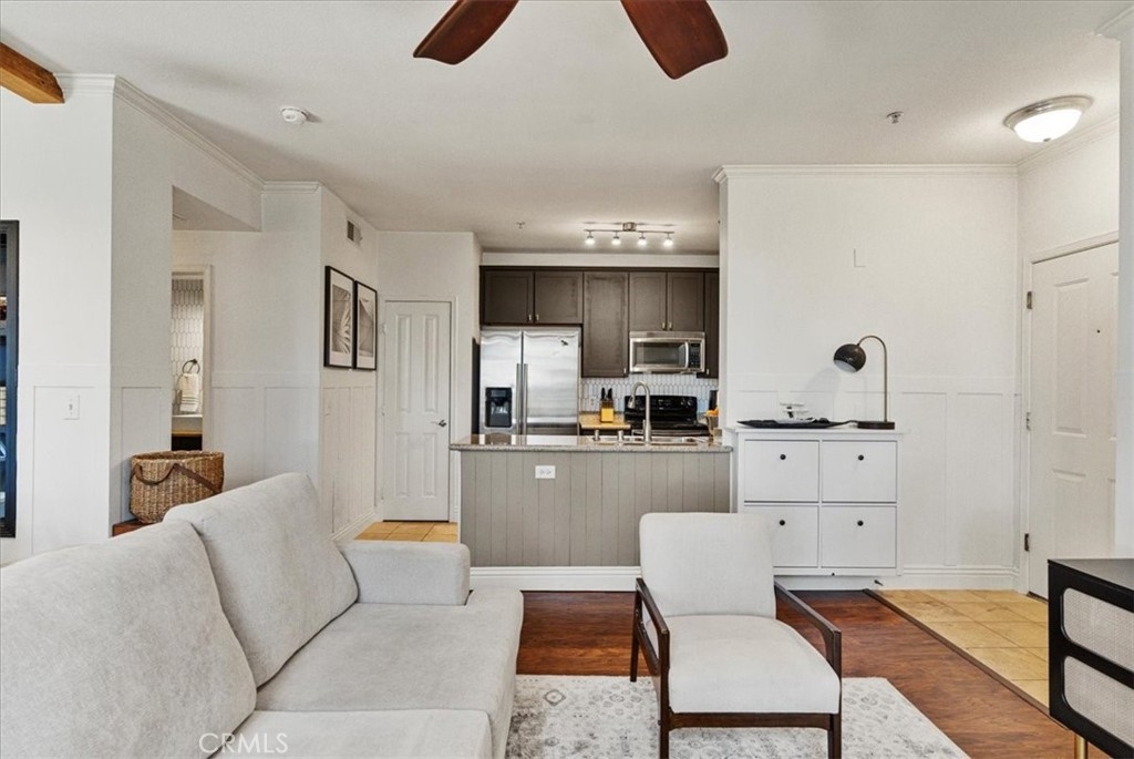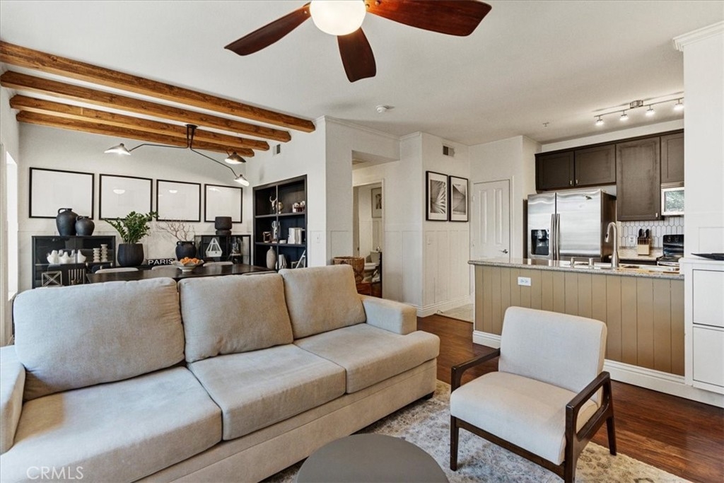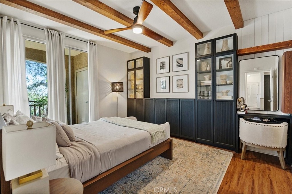 Welcome to this beautifully upgraded one-bedroom, one-bathroom condo in the highly sought-after Canyon Point community of Aliso Viejo. Designed with modern elegance, this home showcases laminate wood flooring, a sleek double vanity sink with side storage cabinets in the bathroom, custom accent wall moldings in the living area, hallway, bathroom, and charming wood ceiling beams in the dining area and bedroom. Additional built-in storage in the bedroom enhances functionality, while the freshly repainted interior and a new water heater ensure move-in-ready convenience. The kitchen and bathroom cabinets have also been refreshed for a contemporary, polished look. Enjoy resort-style amenities, including a pool, spa, fitness center, clubhouse, and night patrol security. This condo includes one assigned parking space with ample guest parking in a pet-friendly community. Perfectly situated near shopping, dining, top-rated schools, and easy freeway access, this turnkey home is a fantastic opportunity. Don’t miss out—schedule your private showing today!