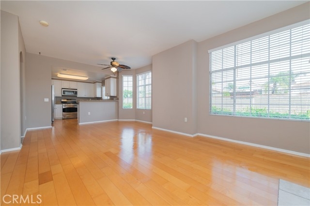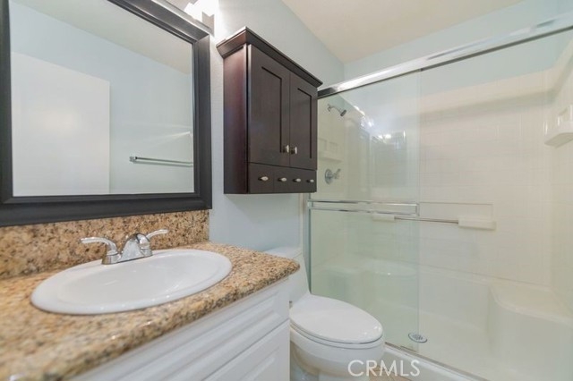 A beautiful ground floor condominium in a highly sought after gated community. You will Love this newly renovated home with New Laminate Wood Floors through out the living room and kitchen. This condominium features an open floor plan in the living area with windows overlooking the greens. The living space has a fireplace and a plantation style ceiling fan. The kitchen has white cabinets, granite countertops and stainless steel appliances. This end-unit includes an outdoor patio for relaxation. The primary suite is spacious with two closets, and one is a walk-in closet. The primary suite‘s bathroom has a big bathtub and double sinks vanity. This unit has an attached garage with washer and dryer hook up. There is also one reserved parking space outside the unit. The community has two resort-style pools and spas, a fitness center, a clubhouse and BBQ area. It is conveniently located to shops, restaurants and freeways (73 toll road and I-5).
