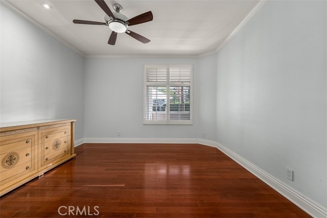 Welcome to this inviting first-floor condo located in the desirable Canyon Villas community of Aliso Viejo. This beautifully maintained 1-bedroom, 1-bath home offers an open and bright living space enhanced by wood flooring, crown molding, plantation shutters, and a ceiling fan for added comfort. The upgraded kitchen features granite countertops, stainless steel appliances, and ample cabinetry, while the bathroom was fully remodeled in 2021. A full-size washer and dryer, refrigerator, and a thoughtfully designed 762-square-foot layout make everyday living easy. Outside, a private gated front patio provides a peaceful spot to relax, and the property includes a one-car garage with an additional parking space. Canyon Villas offers resort-style amenities such as two pools, spas, a fitness center, clubhouse, and outdoor BBQ areas, all within a gated community close to shopping, dining, trails, and beaches. With its prime location and welcoming features, this home is an exceptional opportunity in Aliso Viejo.