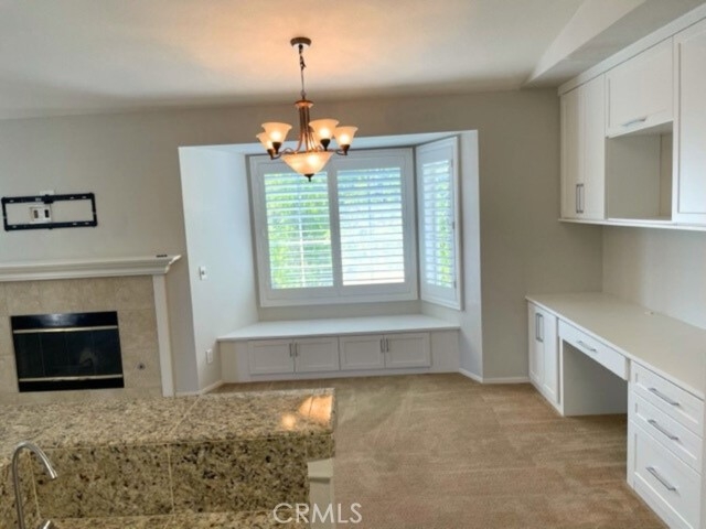 Charming 1 bedroom/1 bath penthouse style condo on the top floor with oversized deck area in the sought after community of Canyon Villas within walking distance to the Aliso Viejo Town Center! This spacious floor plan offers a large family room with fireplace and vaulted ceilings, perfect sized kitchen with granite countertops, stainless steel appliances and large sink. Custom built-in desk and storage off the kitchen, primary bedroom with ceiling fan, mirrored walk-in closet and bathroom with large vanity and dressing area, tile countertops, dual sinks, tub/shower and lots of storage. One car (shared) garage is in back of the unit, plenty of guest parking spaces throughout the complex as well as side street parking. There is also a private laundry room for your washer and dryer in a closet on the deck. Resort style and immaculately maintained recreation areas include 2 pools and spas, exercise center and clubhouse.