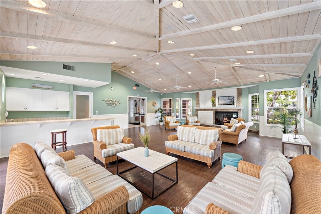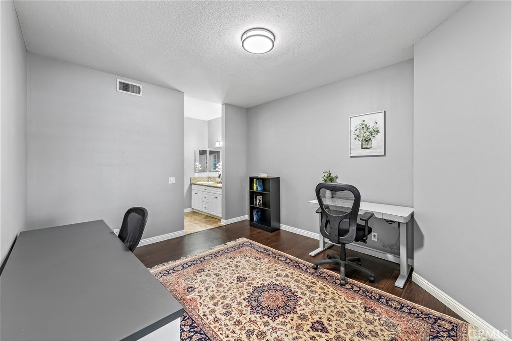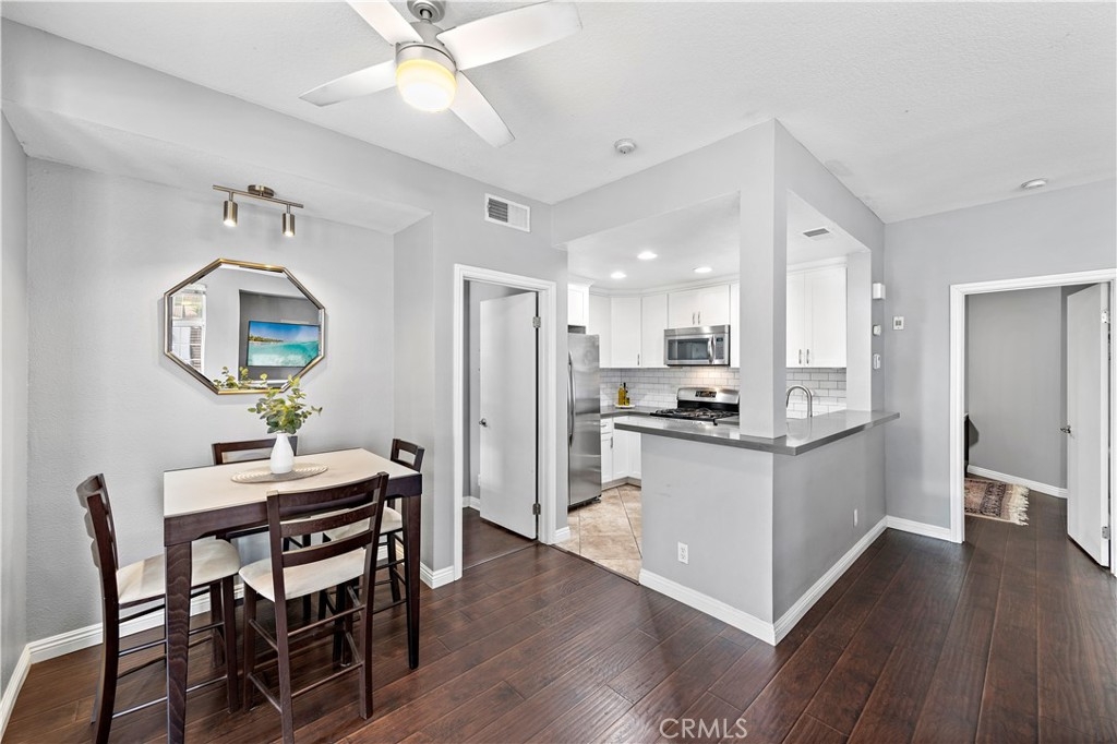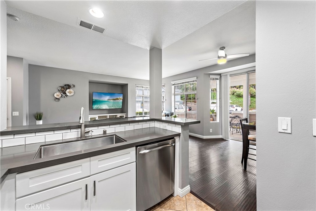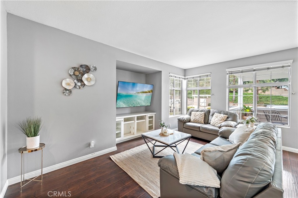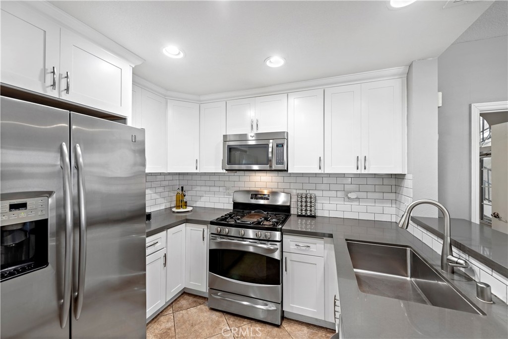 DREAM HOME, MOVE IN READY, CORNER UNIT, DUAL PRIMARY BEDROOMS, UPGRADED KITCHEN AND BATHS, IMMACULATE INTERIOR WITH AN OPEN FLOOR PLAN, LOCATED IN THE PRESTIGIOUS CANYON VILLAS GATED COMMUNITY WITH POOL, SPA AND GYM… THIS HOME HAS IT ALL! Enter to single level living with no interior steps, large great room, lots of natural light, wide planked laminate flooring and raised baseboards throughout. Model perfect kitchen with quartz countertops, subway tile backsplash, white shaker soft close cabinets, farmhouse sink, stainless steel appliances and barstool seating. Relax on your large private patio accessible from living room with plenty of space to grill and entertain. Each bedroom has its own double sink bathroom and walk in closet. Upgraded bathrooms with granite countertops and tile floors. One car garage, and assigned space close to the unit. Located in a gated community with resort style amenities including two swimming pools and spas, BBQ areas, fitness center, and private clubhouse. Centrally located, close to shopping centers,Toll 73, many restaurants and AV Town Center.