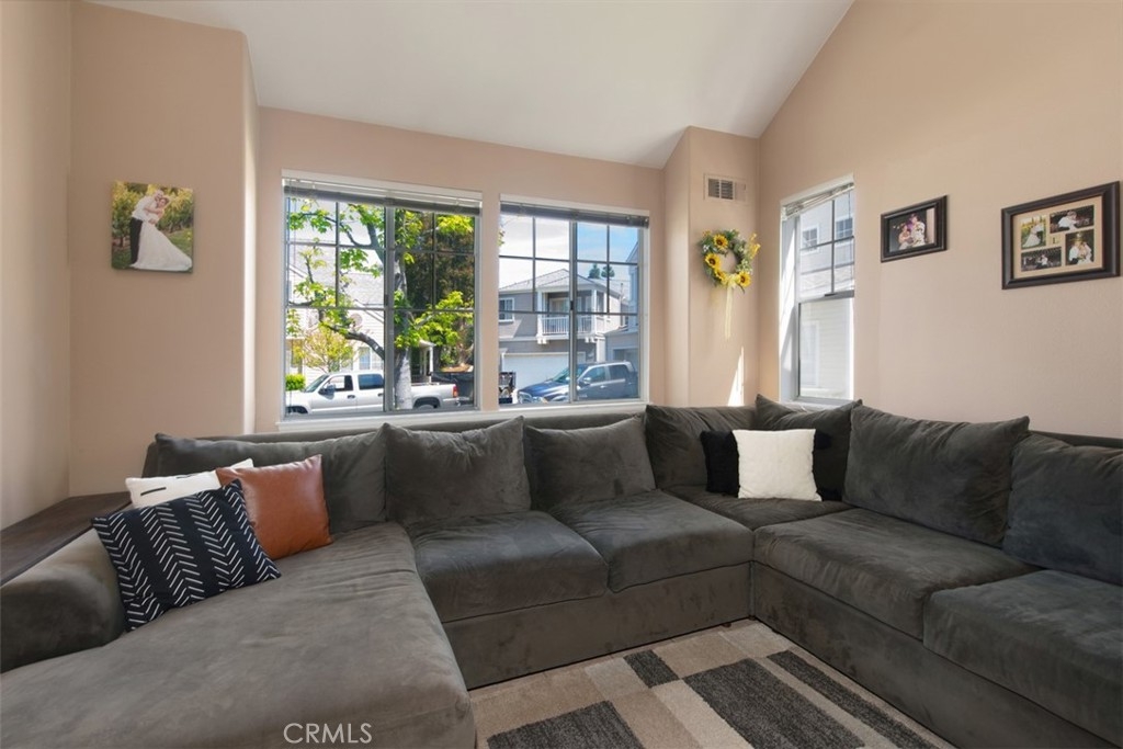 Cape Code style home located on a quiet cul-de-sac in the highly sought after and family friendly community of Cape Series. Offering almost 1500 sqft feet of open living space. 3 bedrooms and 2 full bathrooms. One half bath conveniently located downstairs. Featuring an open floorplan with stunning vaulted ceilings! Gourmet kitchen which opens to a family room with fireplace. Living room and dining room with large window's offering ample natural light. Tile and laminate flooring throughout. Recessed lighting, crown molding and window shutters amplify the pride of ownership. Entertain guests or relax in the spacious backyard with patio cover and beautiful trees which offer loads of shade!