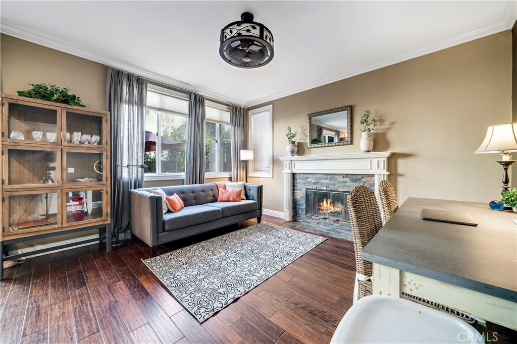 In the beautiful Cape Series community of Aliso Viejo, you will fall in love with this DETACHED home. As you make your way through the gorgeous, family-friendly community, you will come upon this property that has more than enough space for everyone and is the perfect opportunity to put your own personal stamp on a home to love for years to come. As you make your way through the front door, you will be greeted by high ceilings and windows that make the floor plan feel open and let light flood inside from all angles. Crown molding and wood flooring throughout add a sense of elegance to the property. The formal living room and dining area makes having guests over a breeze as entertainment flows with ease. The efficient kitchen features granite countertops and stainless steel appliances, which complement the cabinetry perfectly. Just off the kitchen is the family room with a gas fireplace and ceiling fan, making it a great place to catch up with friends or enjoy a quiet night at home. Making your way out to the backyard, you will find a large, private space to enjoy some fresh air. Several fruit trees, including lemon, lime, apple, and tangelo, as well as a 5-hole putting area complete this space that is one of the largest, low-maintenance, fenced yards in the development. Back inside, the spacious master retreat includes vaulted ceilings with a ceiling fan and an en-suite bathroom with dual sinks with granite countertops, steam shower, soaking tub, and a walk-in closet. Two accessory bedrooms and another full bathroom add space for children and guests alike or can be used as a home office or gym. To finish off the property, an attached two-car garage features air conditioning, built-in storage, and epoxy flooring. Additional home amenities include a newer air conditioning unit, furnace, and ducting, as well as a whole house “Pelican” water filtration system. Within close proximity to local shopping, dining, highways, and schools, this home is truly in a great location. This type of opportunity does not come around often!