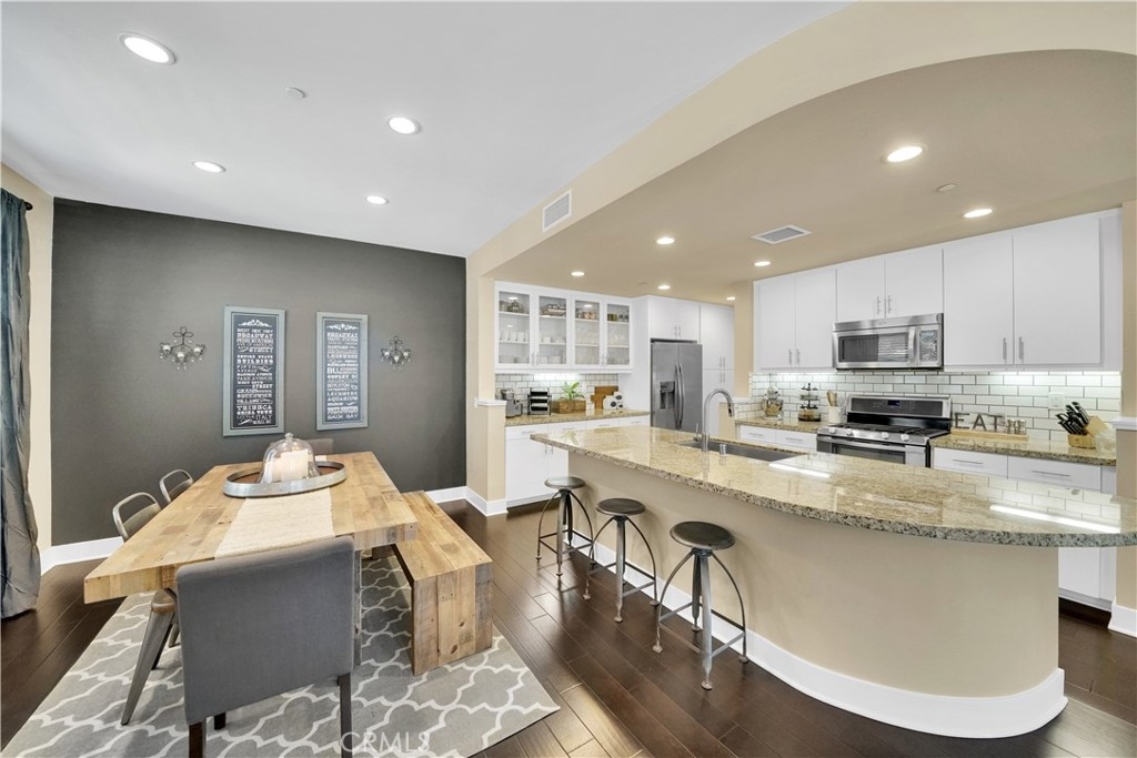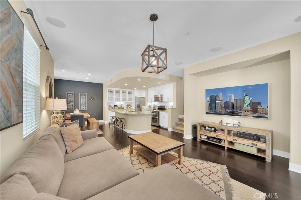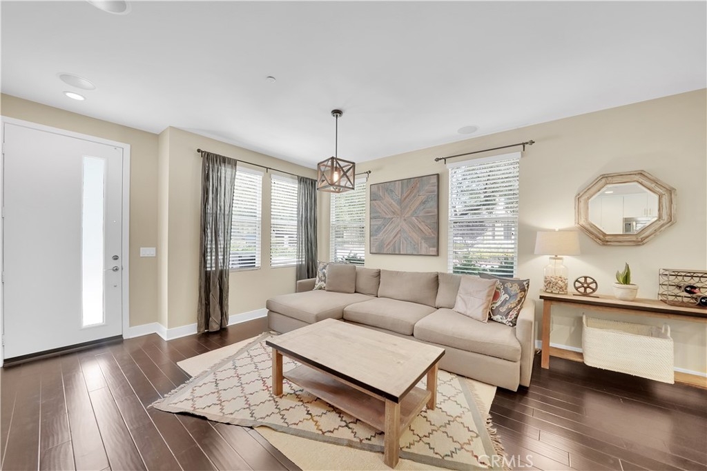 Welcome home to 7 Vantis--urban city living in the heart of Aliso Viejo! One of the most sought after open floor plans in Vantis, this upgraded corner unit comes complete with three bedrooms, three bathrooms, and a two car side-by-side garage. Fully appointed with wood floors and custom window treatments modern finishes define this home. Entertain in your gourmet kitchen with stainless steel appliances, an oversized dine-in island and focal glass cabinet doors or soak up the afternoon sun grilling on your front porch. Laundry is conveniently located on the second level along with the master bedroom, en suite, and huge walk in closet. On the third floor you’ll find two more bedrooms, extra study nook, and another full bathroom. With no Mello Roos, enjoy all the amenities that Vantis has to offer including a private gym, pool and spa with covered cabanas, outdoor kitchen with outdoor fireplaces, business center, walking paths and gardens. Just a short stroll to shopping, restaurants, movies and much more at the Aliso Viejo Town Center. Conveniently located across the street from Club Renaissance, and only minutes away from the 73 or 405 freeways. Come quick!