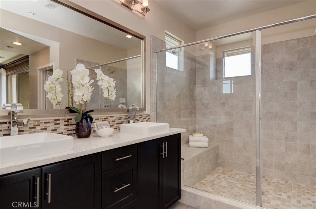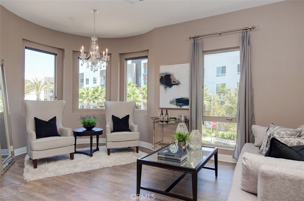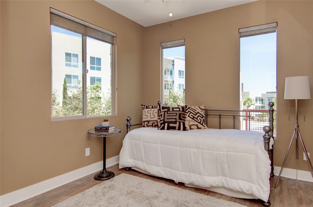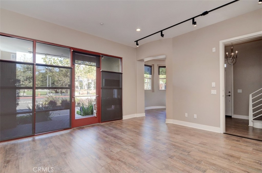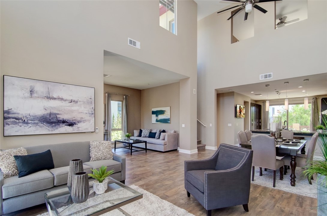 Rare opportunity to own this newly built in 2014, stylish, urban work-live home on a prime corner location with excellent frontage, view, and privacy all around. Convenient separate entrances for private home and storefront. This upscale home is adorned with wide plank laminate floors that flow seamlessly throughout all 3 levels. The second level is comprised of the kitchen, great room, dining room, bedroom & bathroom, balcony, and laundry area. Dark shaker cabinetry with granite countertops, subway tile backsplash, island & breakfast bar, and commercial grade, stainless steel Kitchen Aid appliances create a kitchen that’s refreshing and modern. The great room boasts high ceilings, high windows and 2 luxe ceiling fans. The private master suite occupies the entire third level boasting a balcony with fantastic views, sleek barn door leading to bathroom, spacious walk-in shower, & walk-in closet with mirror door. Fantastic community amenities offer newly remodeled Vantis Clubhouse with swimming pool, cabanas, outdoor fireplace and BBQ’s, fitness center, & more. City Walk is conveniently located within walking distance to the Aliso Viejo Town Center with shopping, restaurants, theater, and easy access to the toll road. Run, don’t walk, to City Walk, a perfect blend of professional ambitions with personal needs.