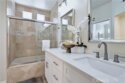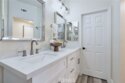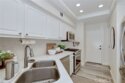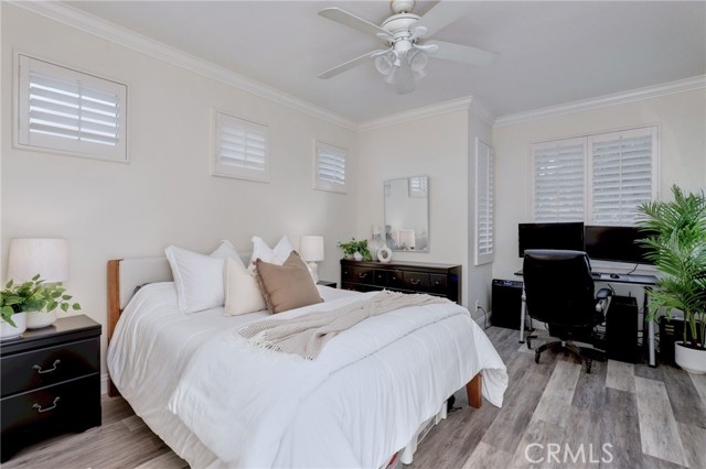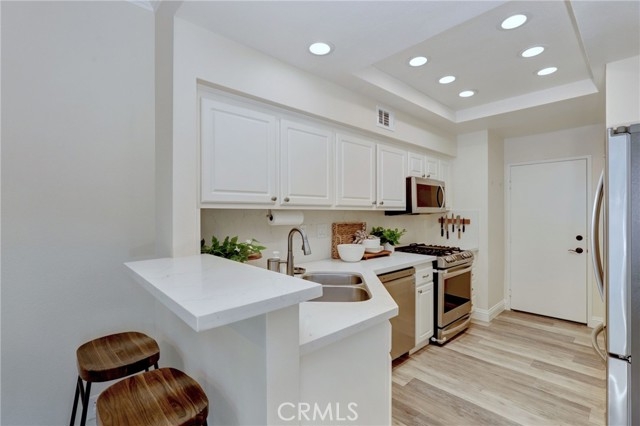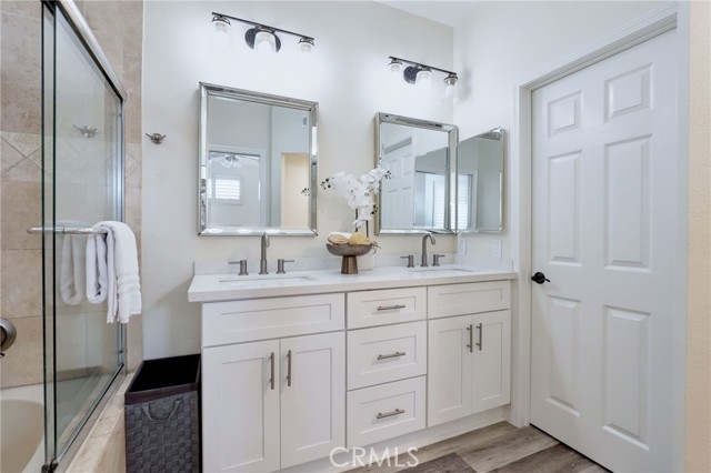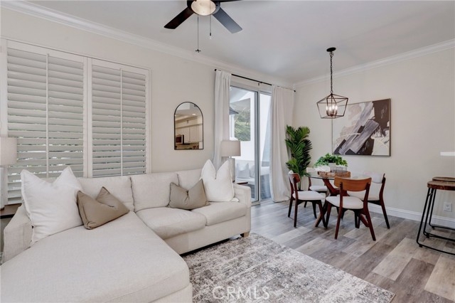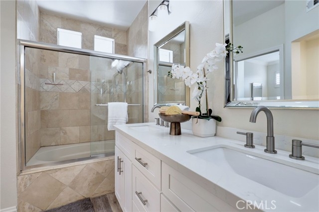 This beautifully updated end-unit in the sought-after Coronado Cay community of Aliso Viejo is the definition of move-in ready. Since ownership, the home has been extensively improved with LVP flooring throughout, crown molding, updated baseboards, new interior doors, fresh designer paint, new lighting fixtures, and a Nest thermostat for modern comfort. The kitchen shines with quartz countertops, sleek cabinet hardware, and stainless steel appliances—perfect for both everyday living and entertaining. The open floor plan offers a light-filled living area and a dining space that flows effortlessly to a private patio, ideal for enjoying morning coffee, weekend barbecues, or hosting friends and family. A convenient half guest bathroom is also located on the main level. Upstairs, two spacious dual en-suite bedrooms each feature their own updated baths. The primary suite includes a dual-sink vanity with quartz countertops, designer fixtures, and a custom-organized walk-in closet. Additional highlights include an upstairs laundry room, a TWO CAR GARAGE WITH DIRECT ACCESS, and newly added garage storage cabinets. The home’s prime end-unit location offers extra privacy, an abundance of natural light, and serene views of lush community landscaping. Residents enjoy access to the community pool and well-maintained common areas, as well as the convenience of being just minutes from Aliso Viejo Town Center, award-winning schools, hiking and biking trails, golf courses, and nearby beaches. With its ideal combination of style, location, and amenities, this home is ready for its next owner to enjoy.