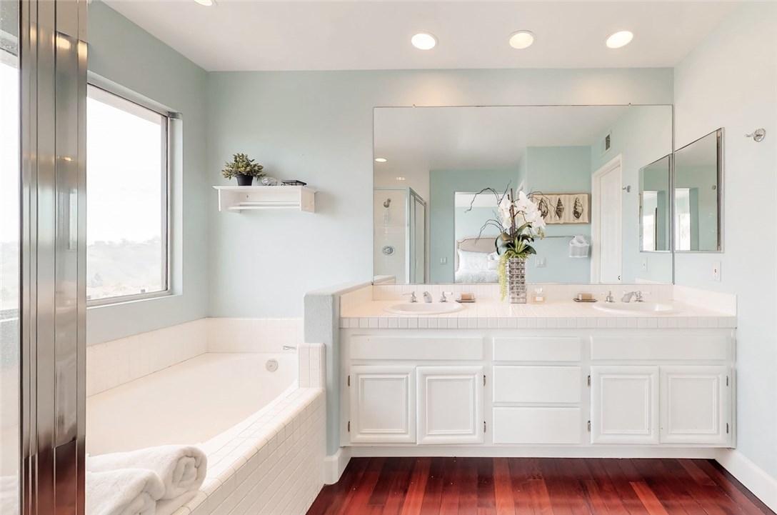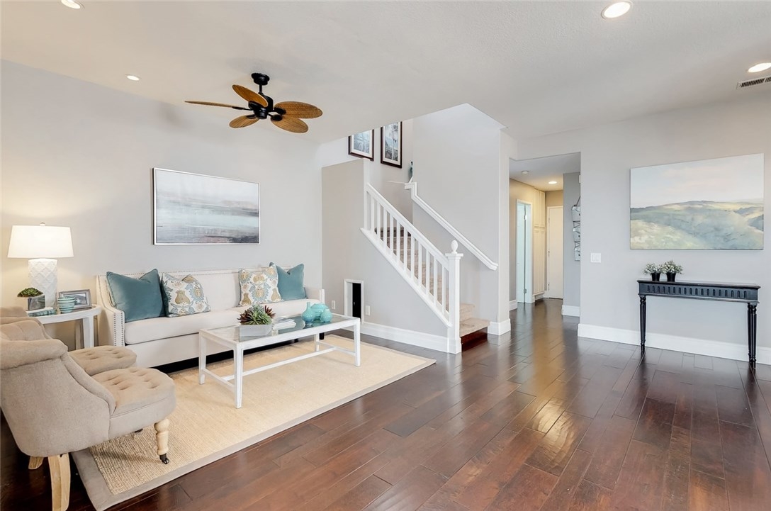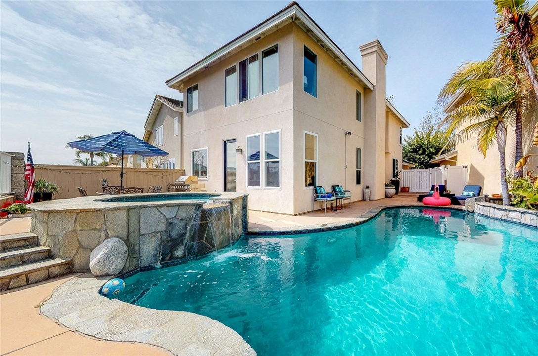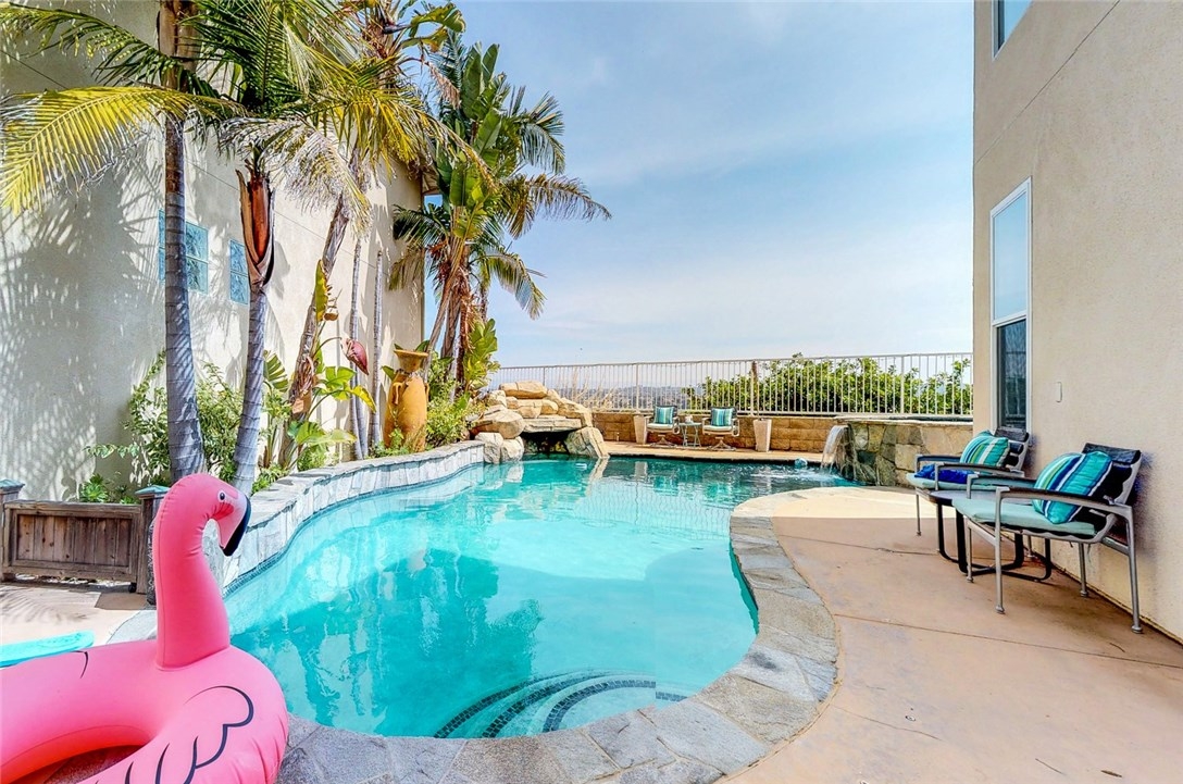 4 BEDROOM POOL HOME WITH PANORAMIC VIEWS!! This beautiful Cottages home is an entertainers delight! You will not find another home with these features in the community. Owners have removed walls in the downstairs to create an open floorplan with a spacious kitchen/great room combination. The upstairs loft has been completely closed off to create a large living/office space. Modern gourmet kitchen with center island, farmers sink, quartz countertops & high end stainless steel appliances AND views out to the rock pool and spa with waterfall features. The outdoor space is amazing with stunning views of the Saddleback mountain range and city lights views. Bonus, this home also has a main floor bedroom and full bath! Wood flooring thought the lower level. Upstairs laundry room, with extra storage, and 3 more bedrooms, including a spacious master with views, views, views! Master bath has large soaking tub and separate shower. Great family home in Aliso Viejo- listed as top 10 safest cities in the USA, low HOA, taxes and no mello roos! Nearby award-winning schools, shopping, dining and 22+ miles of hiking/biking trails! Minutes to the beach, and cool ocean breezes!