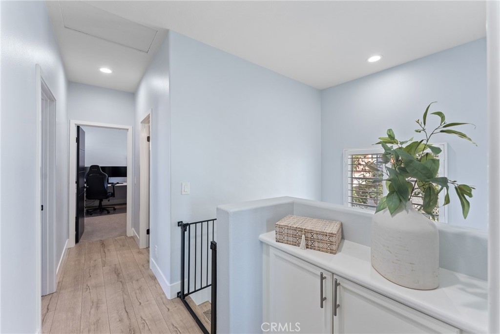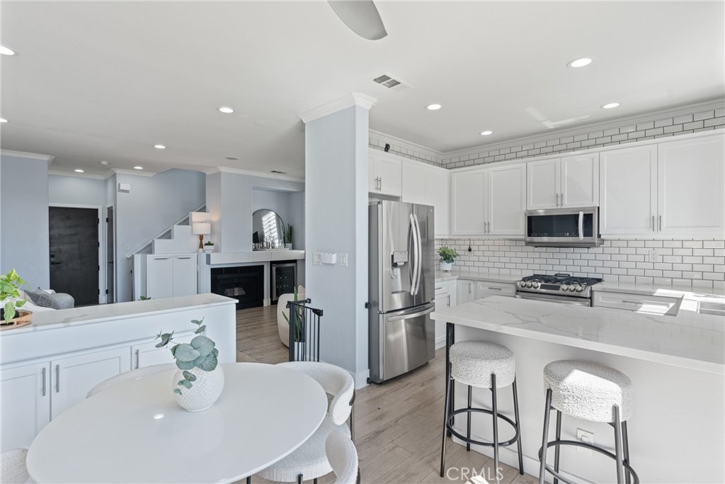 Welcome to this beautifully updated 3 bedroom, 2 1/2 bathroom detached home nestled in the desirable gated community of Flores Los Alisos. Boasting breathtaking mountain and hillside views, this home offers a perfect blend of modern upgrades and serene outdoor living. Step inside to find wooden plantation shutters, recessed lighting, and modern ceiling fans throughout. The cozy fireplace, quartz kitchen countertops, and sleek interior doors enhance the home’s contemporary charm. A built-in wine fridge adds a touch of luxury, perfect for entertaining. Enjoy alfresco dining on the wraparound patio complete with a built-in gas line for grilling, all while taking in the scenic mountain views. The location is unbeatable, just a short walk to Aliso Canyon Community Park. This home is fully upgraded for comfort and convenience, featuring smart home technology including a Nest thermostat and Simplisafe locking system. The property has also been re-piped, providing added peace of mind for years to come. Don’t miss your chance to own this turn-key home in a peaceful, gated enclave surrounded by nature.
