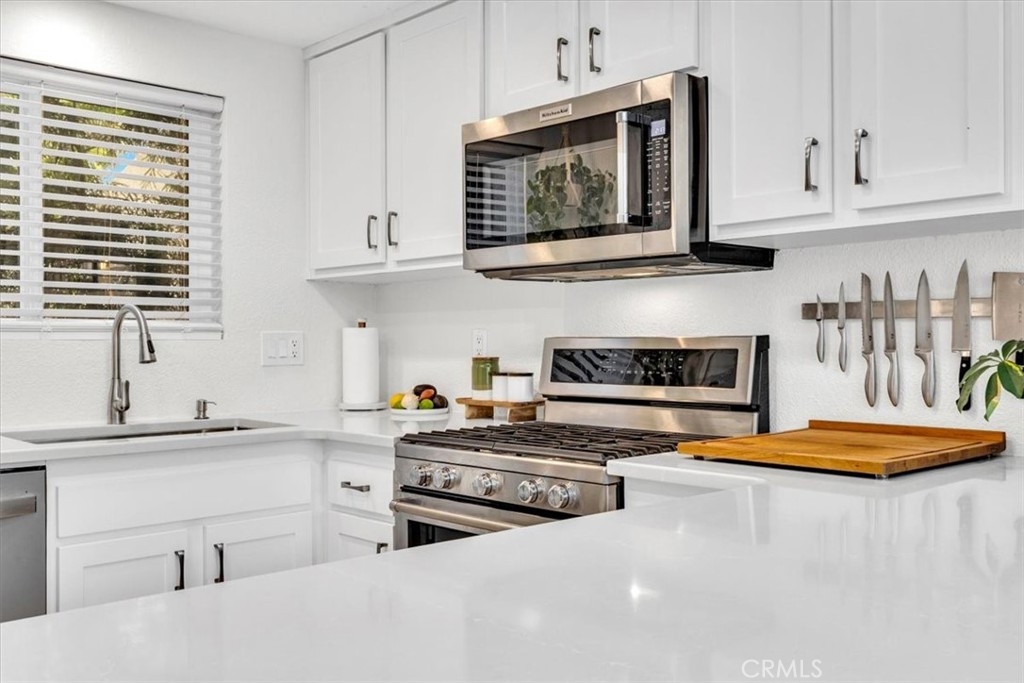 Welcome to 15 Rosewood, a beautifully remodeled 3-bedroom, 2.5-bath condo located in Glenwood Park, one of Aliso Viejo’s most sought-after communities. With approximately 1,300 sq ft of well-designed living space, this light-filled home is warm, welcoming, and full of charm from the moment you walk in. Soaring vaulted ceilings, abundant natural light, and a cozy wood-burning fireplace create an inviting main living area. Step outside through one of two dual-pane sliding glass doors and unwind in your private, tree-lined backyard—complete with lemon and peach trees—perfect for sipping a glass of wine or enjoying a quiet evening outdoors. The updated kitchen features soft-close cabinetry, quartz countertops, stainless steel appliances, and modern finishes throughout. With generous counter space, it’s ideal for preparing meals or laying out a buffet for entertaining. The adjacent dining area is spacious and also offers backyard access, making indoor-outdoor living a breeze. Upstairs, the primary suite overlooks the serene backyard and includes two closets and a ceiling fan for comfort. The updated ensuite bathroom features a dual-sink vanity with quartz countertops and a luxurious walk-in shower. Two additional bedrooms offer ample space and share a beautifully remodeled full bathroom. Additional highlights include dual-pane windows, stylish finishes throughout, and direct access to a 2-car attached garage. Glenwood Park offers resort-style amenities including a sparkling pool, jacuzzis, clubhouse, gym, tennis/pickleball courts, and is surrounded by lush greenbelts and parks. All this, just minutes from Aliso Viejo Town Center, scenic trails, award-winning schools, and with easy access to the 73 toll road and major freeways. Don’t miss this move-in-ready gem in the heart of Aliso Viejo!