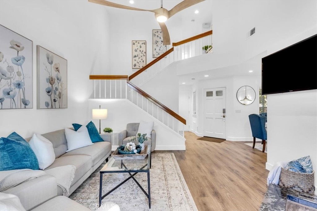 As soon as you through the front door, you'll feel like you’re home. Discover this move-in ready 3 bedroom, 2.5 bath, 1,306 square foot home in the highly desired community of Glenwood Park in Aliso Viejo. It is incredibly rare to find a backyard like this in Aliso Viejo, and this one is truly special. Enjoy views of mature trees, a spacious wraparound yard, and an entertainer’s dream setup with a covered patio and multiple seating areas. It is the perfect place to gather with friends for backyard dinners or to cheer on your team during Super Bowl Sunday. Inside, the light and bright updated kitchen features granite countertops, stainless steel appliances, recessed lighting, a breakfast bar, and a picture window that frames the beautiful backyard and surrounding trees. The living room feels open and inviting with vaulted ceilings, vinyl flooring, fresh interior paint, a wood burning stove, Anderson dual pane windows with custom blinds, and a ceiling fan for added comfort. Upstairs, the large primary bedroom overlooks the peaceful greenbelt and includes an updated bathroom with granite countertops, upgraded cabinetry, dual vanities, a walk in shower, and a spacious walk in closet. All three bedrooms include ceiling fans. The two secondary bedrooms are bright, welcoming, and spacious enough to accommodate queen size beds. One is currently used as a home office, creating an ideal workspace for those who work from home. The generous sized secondary bathroom has also been updated with granite countertops and stylish brushed nickel faucets and shower fixtures add a modern touch. Additional highlights include an attached 2 car garage with an upgraded outlet for electric vehicle charging. Residents of Glenwood Park enjoy resort style amenities including a sparkling pool, relaxing jacuzzis, clubhouse, gym, tennis and pickleball courts, and beautiful greenbelts and parks throughout the neighborhood. All of this is located just minutes from Aliso Viejo Town Center, scenic trails, award winning schools, and convenient access to the 73 toll road and nearby freeways. Do not miss this rare opportunity with an oversized backyard in one of Aliso Viejo’s most sought after communities.