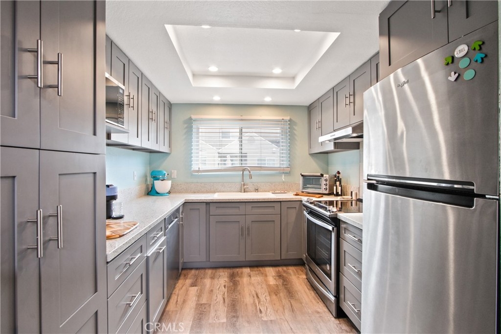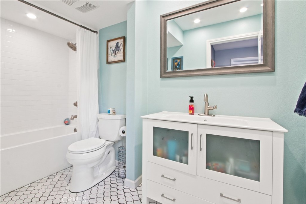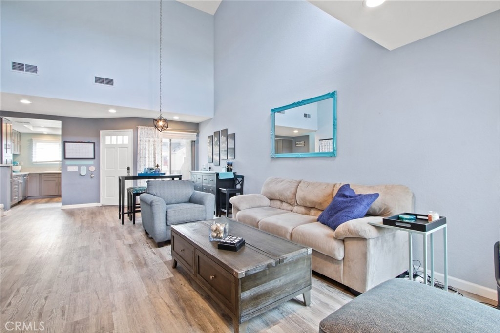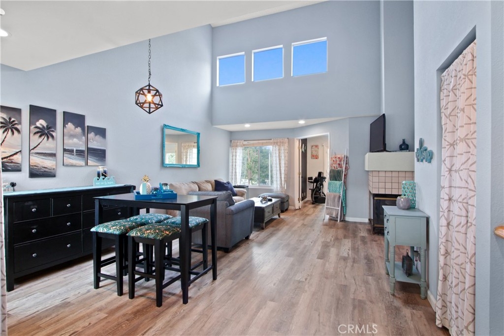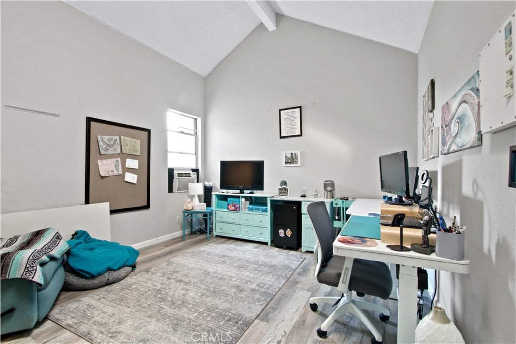 Welcome to 11 Elmbrook, a 2 story upper level open concept 2 bedroom 1 3/4 bathroom condominium unit. The main level is well appointed with soaring vaulted ceilings, recessed lighting, gas fireplace, spacious bedroom with walk in closet, remodeled full bathroom with mermaid tiled floors, bonus room perfect for home office or craft room with direct access to outdoor balcony, remodeled galley kitchen with quartz counter tops. The 2nd level boast a primary suite with vaulted ceiling and 3/4 bathroom. Vinyl plank flooring through out, washer and dryer hook ups are on the main level. 1 car detached garage just steps from the unit. Glenwood Village is a well maintained Cape Cod inspired community with a host of amenities for its residents to enjoy. 11 Elmbrook is just a short walk to the heated spa, olympic size swimming pool perfect for daily laps, kiddie pool, club house and gym. The community is well appointed two lighted tennis courts, picnic area with three gazebos, outdoor bbq and play ground right next to the pool. Enjoy a quick game of soccer, baseball or basketball at one of the many adjacent parks. Conveniently located 1.7 Miles to Aliso Viejo Town Center, .9 Miles to Aliso Viejo Country Club, 2 Miles to the 73 Freeway, 2.7 Miles from local Hiking trails, 3.5 miles to Soka University.