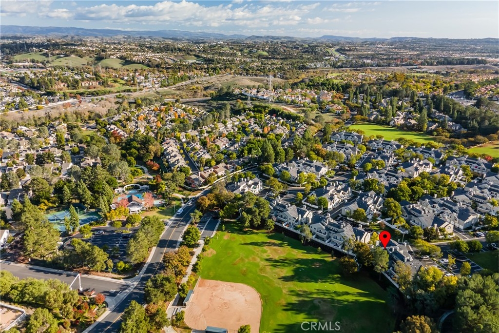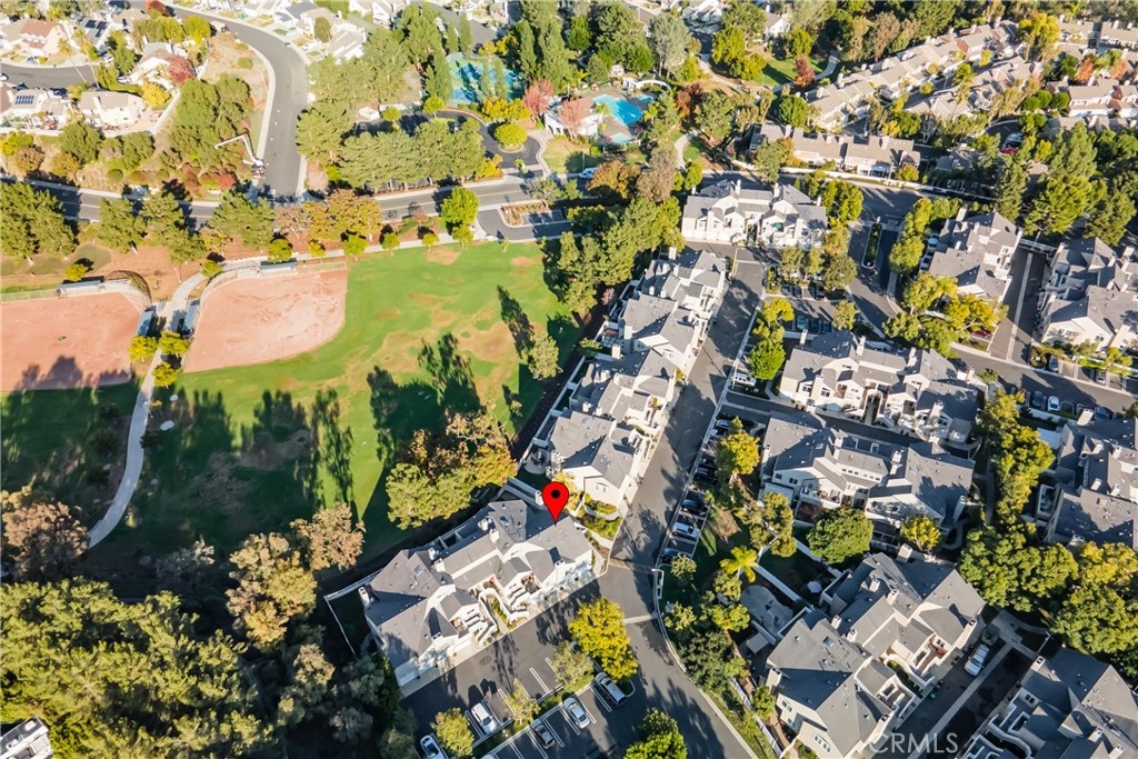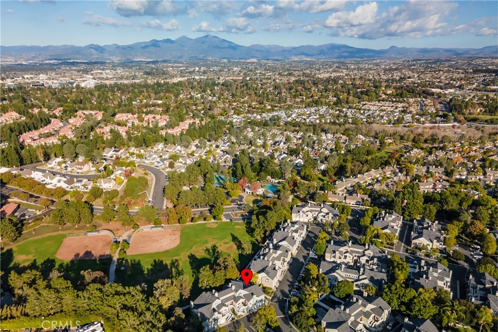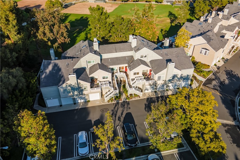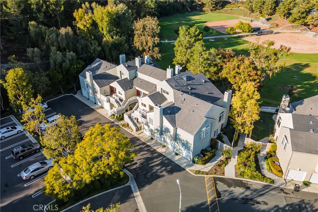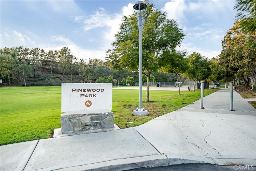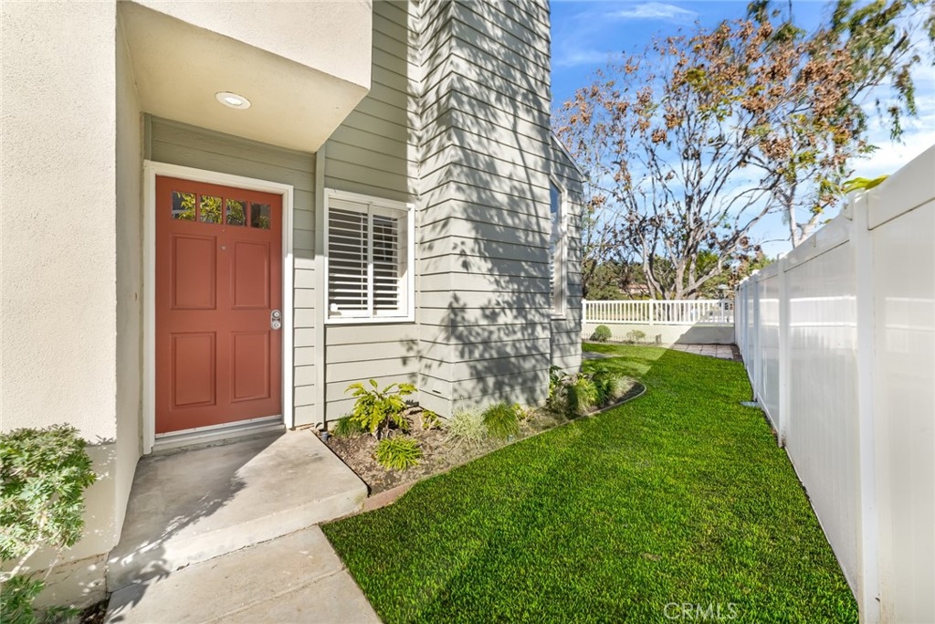 Incomparable wrap around yard with elevated view of Pinewood Park. Gated courtyard entry to this end unit two level townhouse with nobody above or below. Direct access garage plus plentiful additional parking. Living room features vaulted ceiling and a fireplace. Warm and light dining room opens to the upgraded kitchen with granite counters, stainless steel appliances including refrigerator, recessed lighting and pantry adjacent to the door to the garage for convenience. Additionally, there is a den/office/play area adjacent to the living room, a powder room and laundry on the main level including washer and dryer. Upstairs you have two well separated bedrooms and two remodeled bathrooms as well as linen storage. The primary bedroom has a long wall closet, vaulted ceiling, dual sinks and walk-in shower. The hall bath has a tub/shower. The lower level has wood look floors throughout, the entire home has smooth ceilings, central air conditioning, neutral paint and plumbing supply lines have been epoxy lined throughout the entire community. Glenwood Village has a resort style clubhouse with fitness center, pool, spa, tennis, sports courts and here are two parks flanking each side of the community. Close proximity to Aliso Viejo Town Center, hiking & mountain biking and walking paths. Zoned for highly desired schools and there is NO Mello Roos tax, low property tax rate of only 1.0035%* (verify with County Assessor) and reasonable association fees. A very unique, rare location and floorplan offering privacy, yard and views. VA Loan Approved Community.