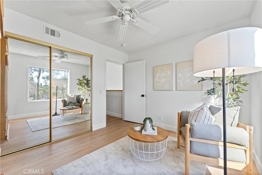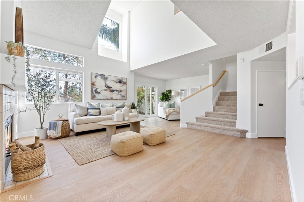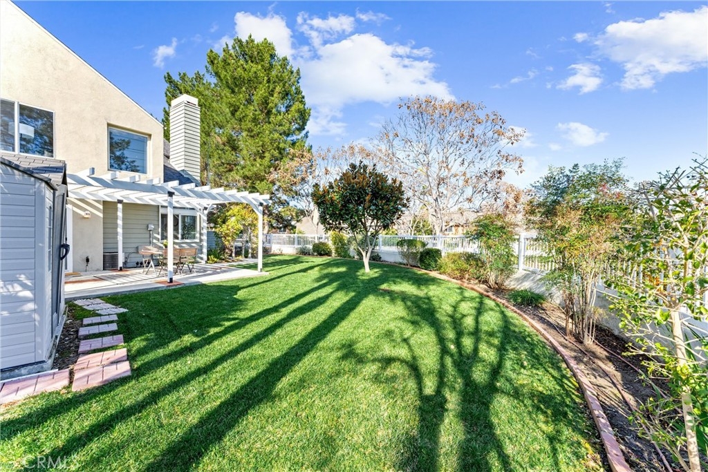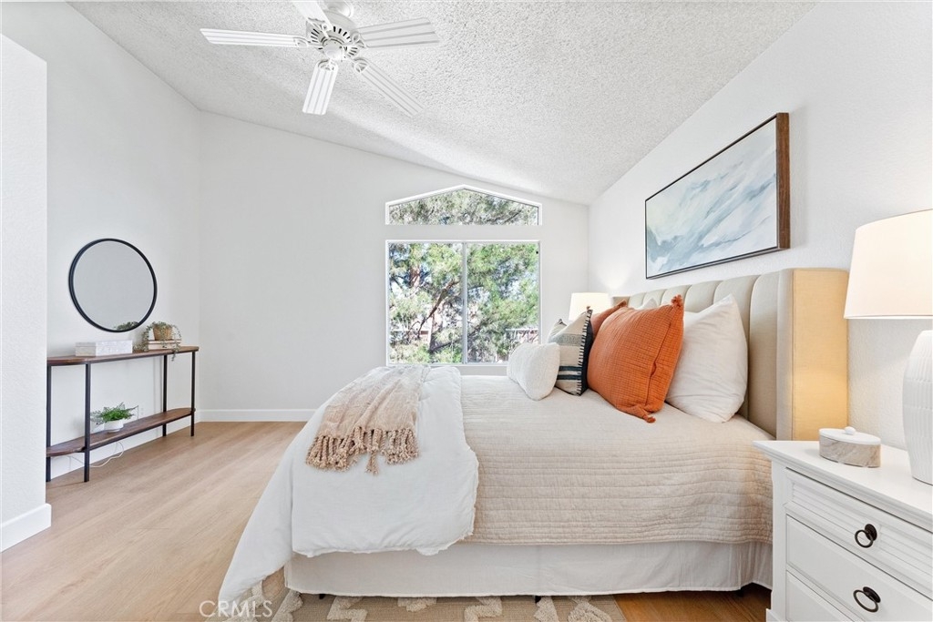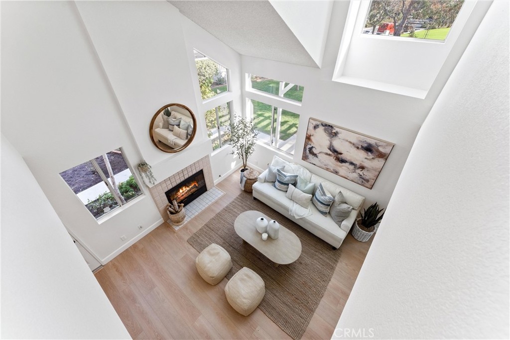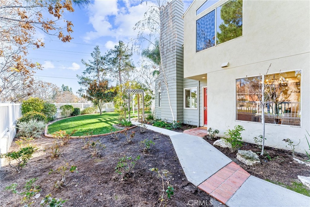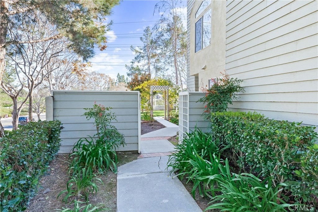 Welcome to this exquisite residence located in a spectacular enclave of Aliso Viejo. Glenwood Village is the perfect place to call home. Upon arrival you'll be wowed by the CORNER END UNIT placement sitting perfectly perched above a marvelous park setting with tree-hill VIEWS that are sure to please. Entering the gate to the front of this delightful property you'll be in absolute AWE of the EXPANSIVE yard that awaits. This is a PREMIUM lot that is TRULY ONE OF A KIND with a large grassy area, front yard area with roses complimented by an english garden archway draped in beautiful foliage and a spacious patio. Upon entering the home you'll notice the high ceilings that add a sense of space. The abundant windows allow the natural light to flow into the home and act as a backdrop to the beautiful views outside. Equally impressive is the gorgeous just installed luxury vinyl plank flooring, custom oversized baseboards, fresh designer paint and updated lighting fixtures to name a few. The floor plan flows nicely with plenty of living space highlighted by a cozy fireplace, the kitchen features a nice sized pantry, stainless appliances and an adjacent dining space. Just off the living room area is a bonus space with several functional options, such as a den, office space or playroom area. A newly installed french style slider leads out to the outspoken and very inviting yard for relaxing, entertaining or gardening. Upstairs you'll find the same luxury vinyl flooring, custom baseboards and designer paint. The spacious primary suite features ample mirrored wardrobe closets complete w/ storage racks, organizers and those high ceilings. In addition, the secondary bedroom boasts a view of the greenbelt, hills and trees as well as a built in Murphy bed. This home has been well maintained and is ready to welcome its new owner to continue enjoying all this property has to offer. Talk about a location, this one cannot be beat! Conveniently located just off the 73, close to Laguna Canyon, El Toro in one direction and shopping, entertainment and the hub of Aliso Viejo in the other. This tract features an HOA spa and across the street and a short walk away is the Glenwood Community Recreation center with a pool, spa, clubhouse, gym, tennis and pickleball courts, picnic areas and more. Aliso Viejo offers an enthusiastic lifestyle, excellent schools and wonderful amenities for every age. This residence exudes comfort, style, community and is ready for you to move in!