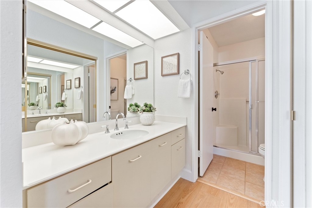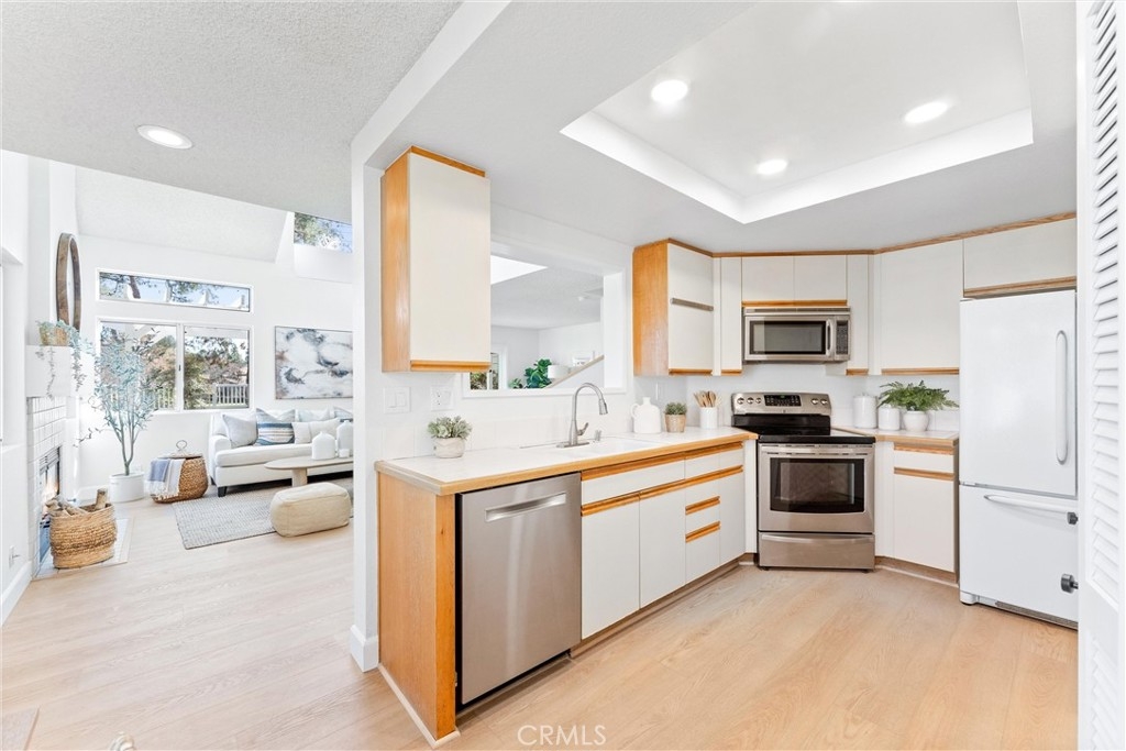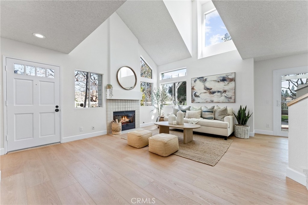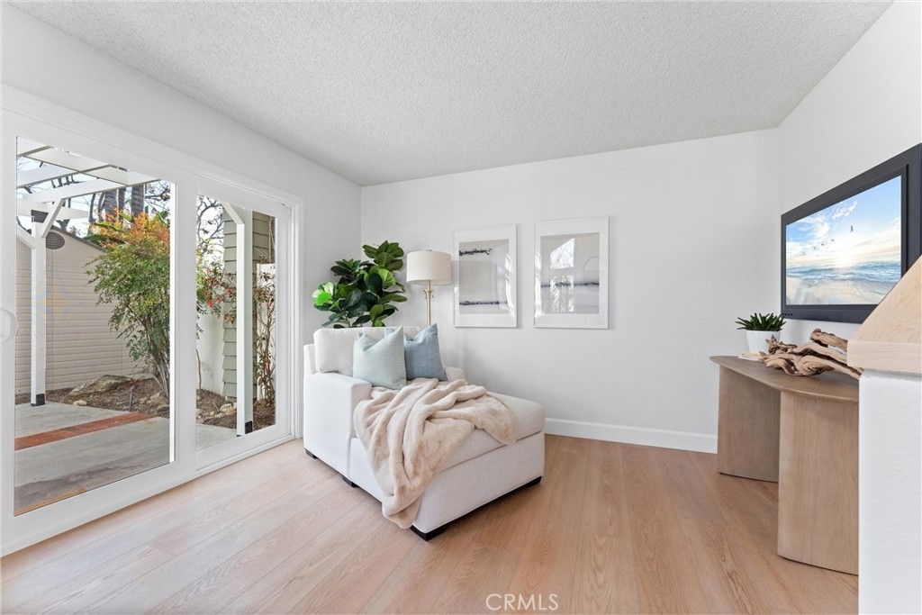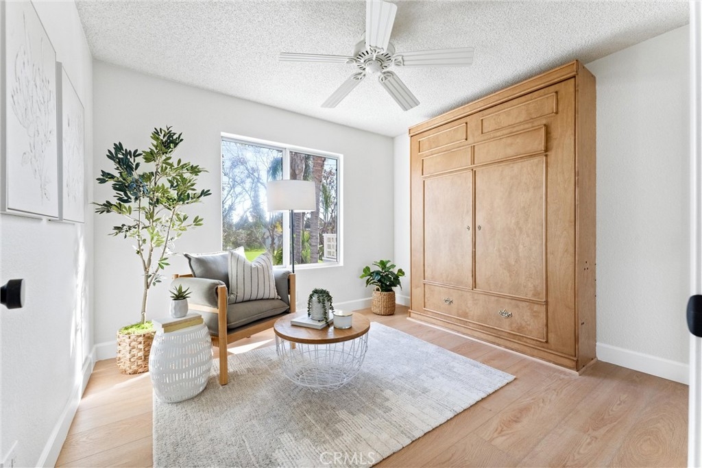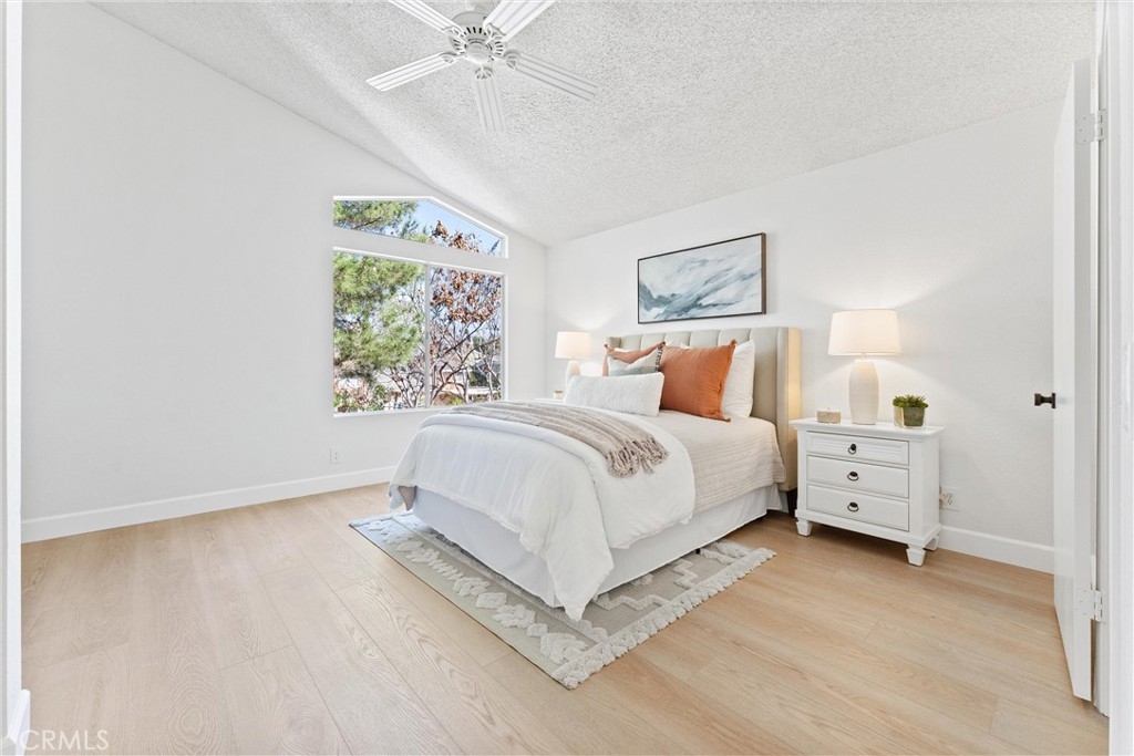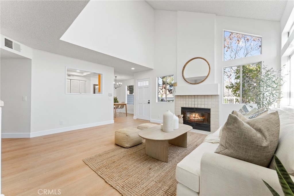 Welcome to this exquisite residence located in a spectacular enclave of Aliso Viejo. Glenwood Village is the perfect place to call home. Upon arrival you'll be wowed by the CORNER END UNIT placement sitting perfectly perched above a marvelous park setting with tree-hill VIEWS that are sure to please. Entering the gate to the front of this delightful property you'll be in absolute AWE of the EXPANSIVE yard that awaits. This is a PREMIUM lot that is TRULY ONE OF A KIND with a large grassy area, front yard area with roses complimented by an english garden archway draped in beautiful foliage and a spacious patio. Upon entering the home you'll notice the high ceilings that add a sense of space. The abundant windows allow the natural light to flow into the home and act as a backdrop to the beautiful views outside. Equally impressive is the gorgeous just installed luxury vinyl plank flooring, custom oversized baseboards, fresh designer paint and updated lighting fixtures to name a few. The floor plan flows nicely with plenty of living space highlighted by a cozy fireplace, the kitchen features a nice sized pantry, stainless appliances and an adjacent dining space. Just off the living room area is a bonus space with several functional options, such as a den, office space or playroom area. A newly installed french style slider leads out to the outspoken and very inviting yard for relaxing, entertaining or gardening. Upstairs you'll find the same luxury vinyl flooring, custom baseboards and designer paint. The spacious primary suite features ample mirrored wardrobe closets complete w/ storage racks, organizers and those high ceilings. In addition, the secondary bedroom boasts a view of the greenbelt, hills and trees as well as a built in Murphy bed. This home has been well maintained and is ready to welcome its new owner to continue enjoying all this property has to offer. Talk about a location, this one cannot be beat! Conveniently located just off the 73, close to Laguna Canyon, El Toro in one direction and shopping, entertainment and the hub of Aliso Viejo in the other. This tract features an HOA spa and across the street and a short walk away is the Glenwood Community Recreation center with a pool, spa, clubhouse, gym, tennis and pickleball courts, picnic areas and more. Aliso Viejo offers an enthusiastic lifestyle, excellent schools and wonderful amenities for every age. This residence exudes comfort, style, community and is ready for you to move in!