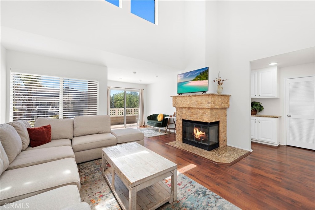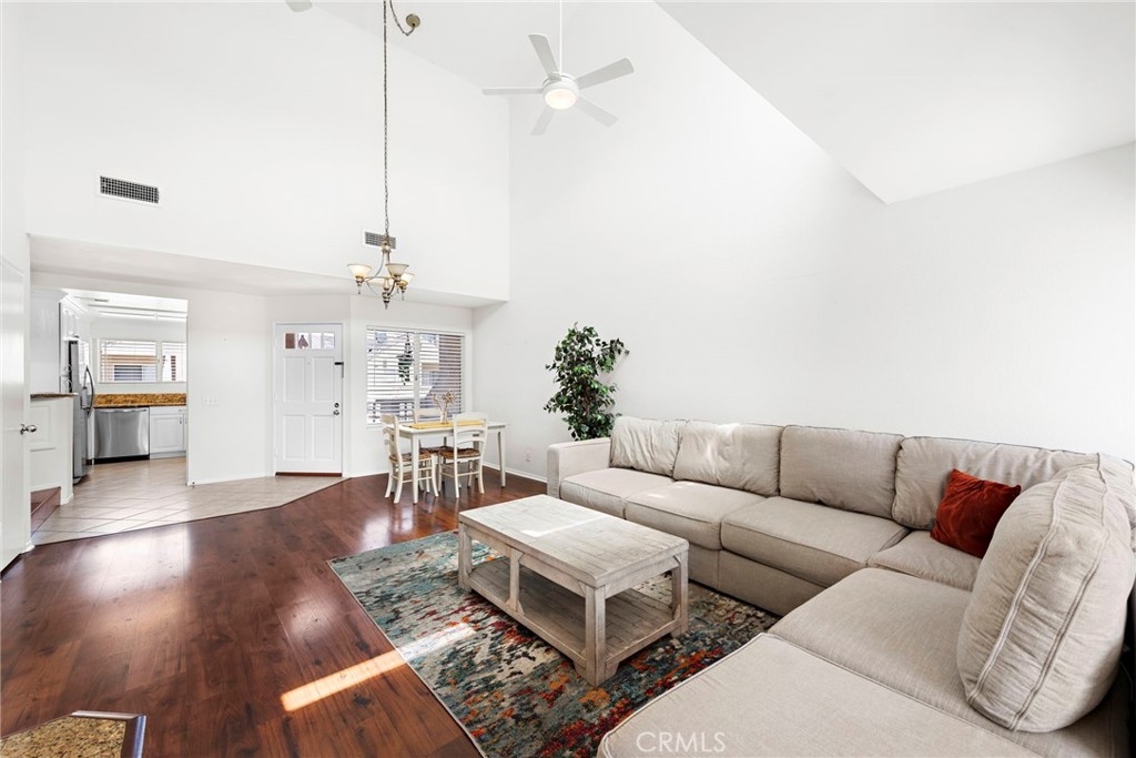 Welcome to the highly sought-after community of Glenwood Village in Aliso Viejo. This welcoming home is filled with natural light, lofty ceilings,and boasts an open floor plan. Engineered wide plank flooring throughout, ceiling fans in the living room with a cozy cornered fireplace, updatedkitchen with custom cabinets, granite counters, and stainless steel appliances. On the main floor, you’ll find one of the bedrooms with direct accessto the back patio, one of the full bathrooms, the kitchen, dining space, living room, and a side sitting area, which could be enclosed as a den orseparate playroom. Upstairs you’ll find an additional bedroom featuring cathedral ceilings, an on-suite bath, and a private closet. Inside laundry,stackable washer/ dryer. Newer A/C unit installed in 2021 as well as a new water heater in 2022. The community offers fantastic amenitiesincluding a pool, spa, gym, clubhouse, tennis courts, sports fields, parks, and more. Plus you’ll have easy access to the highly sought-after schools,the Aliso Viejo Town Center (shopping, dining, and entertainment), and simple connection to the toll road (73), beach access (via 133), hiking,biking, and nature trails!