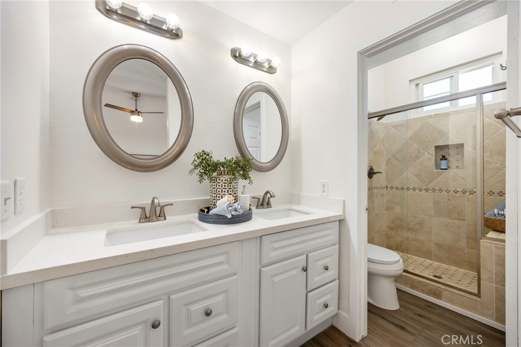 An invitingly modern sanctuary awaits within this remodeled detached home, boasting a spacious and open-concept floor plan designed for contemporary living. Sleek, high-end finishes and an abundance of natural light create a sophisticated yet welcoming atmosphere, perfect for both relaxing evenings and entertaining guests. The remodeled gourmet kitchen is a chef's delight, featuring all new shaker style cabinetry, stainless steel appliances, custom backsplash and a large quartz central island that flows seamlessly into the main living areas. This home offers tasteful surroundings with fresh interior paint, all new wood-look vinyl plank flooring throughout, cathedral ceilings, a custom tile gas fireplace to enjoy cozy nights in, and a brand new A/C for warmer days. The seamless transition between indoor and outdoor spaces enhances the sense of openness and provides a perfect setup for gatherings in the private backyard. The Hamptons community offers residents a lovely pool and spa area with an outdoor fireplace, dining tables and cabanas. Experience the best of convenience and community in a prime location, with excellent schools, beautiful parks, and scenic hiking trails just moments away. You'll also enjoy easy access to premier shopping and dining, creating the perfect backdrop for a vibrant and active lifestyle. Come experience 10 Sherrelwood today!