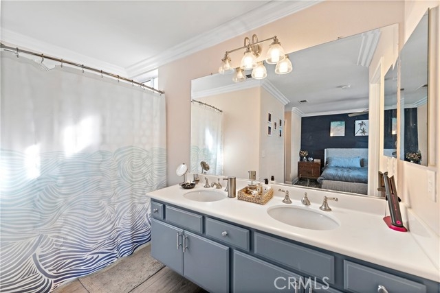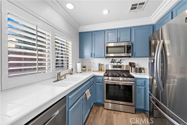Beautiful, LIGHT, and BRIGHT two-story detached home located in The Hamptons community of Aliso Viejo. This 3 bedroom, 2.5 bathroom home is just what you've been waiting for! Upon entering the home you will find an open floorplan living room with a focal point fireplace and high vaulted ceilings. The kitchen features stainless steel appliances, tile countertops, raised panel cabinets, and recessed lighting. Throughout the home you will find updated flooring, plantation shutters, crown molding, and baseboards. The backyard is a private low-maintenance retreat, with room for lounging and summer barbeques. The second level of the home features a master suite with a walk-in closet and dual vanity sinks. All bedrooms are complete with ceiling fans and ample-sized closets. Community amenities include the association pool, spa, bbq, fireplace, cabanas, and tot lot. Great location near theaters, shopping, dining, and a short drive to South OC beaches. Don't miss out on this home!