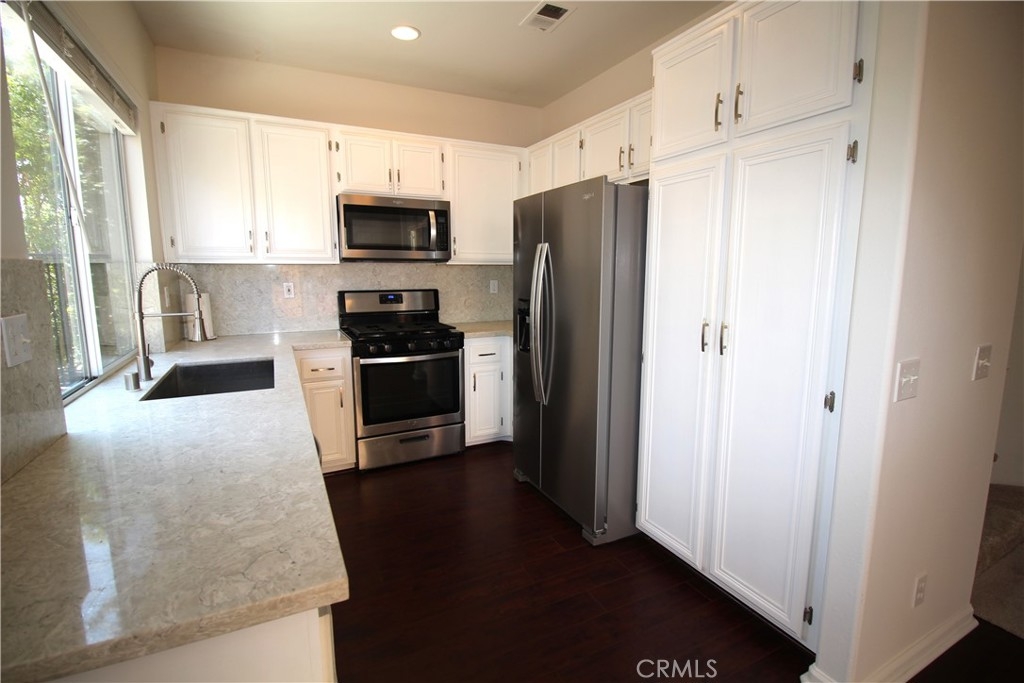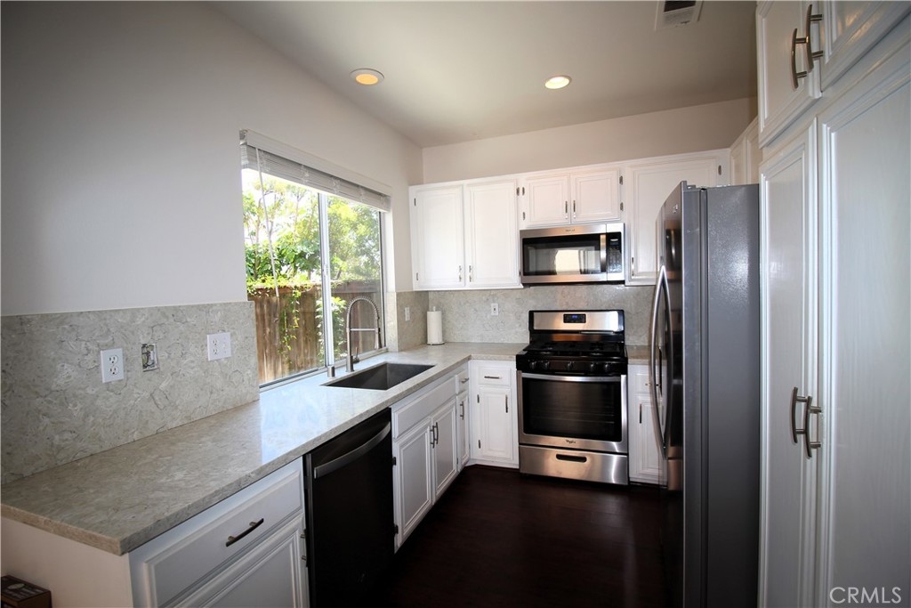 NEW PRICING!!! End-of-Cul-De-Sac Charmer in the Hamptons — Stylish, Private, Move-In Ready! There’s so much charm in the Hamptons, and this beautifully updated detached 3-bedroom home captures it all. Ideally situated at the end of a quiet cul-de-sac, this property offers extra privacy and peaceful greenbelt views, creating a true sense of retreat. Inside, you’ll find a bright and welcoming interior with a warm, neutral color palette and stylish wood laminate flooring throughout. The spacious living area is perfect for gathering with family and friends and is centered around a cozy gas fireplace that brings warmth and character to the space. The kitchen is a chef’s dream, featuring sleek quartz countertops, stainless steel appliances, and modern cabinetry. The inviting adjoining dining area flows effortlessly into a serene private patio oasis, which opens to a spacious backyard that wraps gracefully around the entire home — creating a harmonious indoor-outdoor living experience perfect for hosting lively year-round barbecues, entertaining guests under the stars, or simply unwinding in a tranquil, sun-dappled retreat. Upstairs, the home offers three generous bedrooms, including a serene primary suite with an updated ensuite bathroom. Two additional bedrooms share a spacious hall bath, providing comfort and style for family or guests. This home is conveniently located close to shopping, dining, theaters, medical facilities, and top-rated schools. SOKA University is just minutes away, making this an ideal location for families and professionals alike. Move-in ready and full of charm, this property offers the perfect blend of style, comfort, and convenience — a true Hamptons Gem you won’t want to miss!