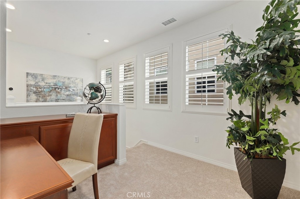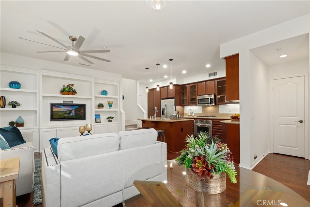 RARE!!! 2-STORY townhome located in the community of Harbor Station in Aliso Viejo. This upgraded corner unit has wood flooring, new paint and carpet and beautiful lighting that adds to the elegance of the highly livable floor plan. The kitchen is appointed with ample cabinet space, granite counters, stainless appliances, and island with bar seating. The living room flows seamlessly from the kitchen and has a beautiful built-in. A half bath completes the downstairs. Upstairs the primary bedroom features plush carpet, ceiling fan, walk in closet and en-suite bathroom with new seamless glass enclosed shower, soaking tub, and dual sinks. The secondary bedrooms are a generous size and includes planation shutters, mirrored closet doors, celling fan and are near to the full hall bathroom. In addition there is a tech center at top of stairs perfect for working at home. Indoor upstairs laundry room and direct garage access makes for easy living. Relax in the front patio with only lush landscaping and hillside opposite the unit. This home also features a nest thermostat and an electric plug in for your electric car. Nearby Aquatic Center, 4 parks in the neighborhood, and so much more. Welcome Home!