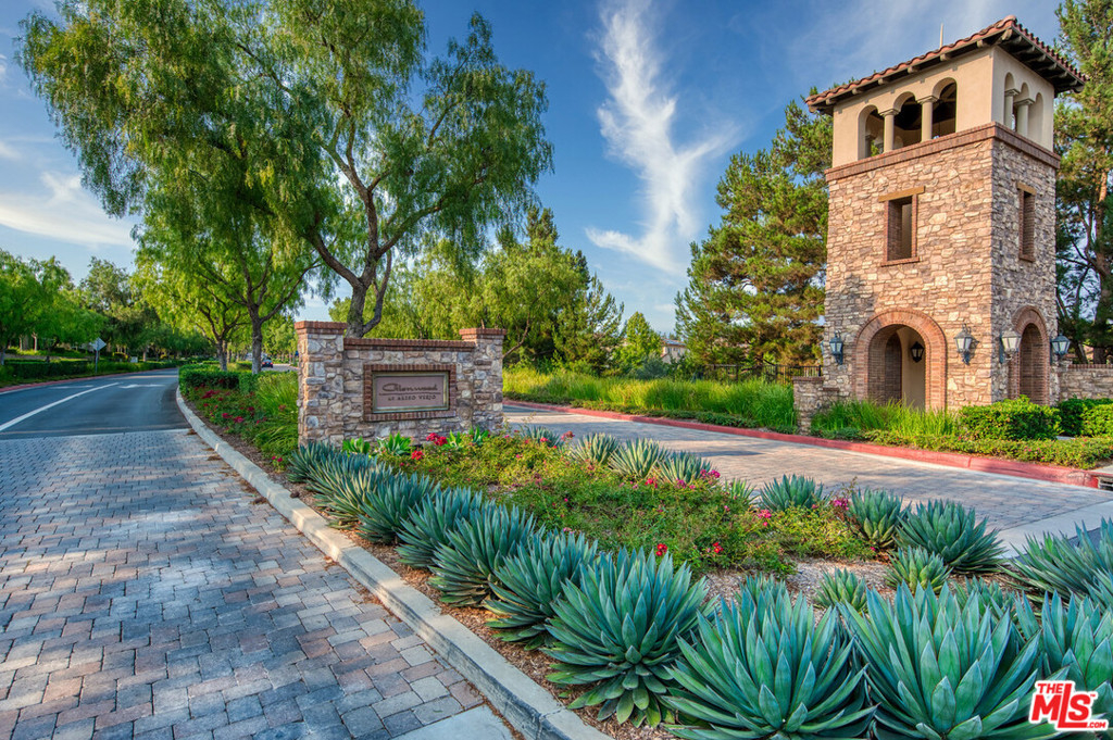 Beautiful tri-level townhouse with ideal views of Saddle Back mountain located in the lush community of Glenwood at Aliso Viejo. Pristine, quiet community with three golf courses, aquatic center, and parks. Close to many highly desired hiking trails. This property has one of the largest front patios in the community, making it extremely easy to entertain, barbecue, or just relax and enjoy the scenery. First floor access to a two car garage and a guest bedroom with en suite bathroom and new flooring. The second floor offers open-concept living with custom built-in cabinetry, great natural light, and balcony. Kitchen and updated powder room/bath located on this floor, as well. New flooring in living and dining room. Primary bedroom is privately perched on third floor boasting peek-a-boo views of mountains, walk-in closet, linen closet and mini fridge. Primary bath offers private water closet, freestanding shower, tub, and double vanities. Property is equipped with alarm system. Unit is exterior facing.