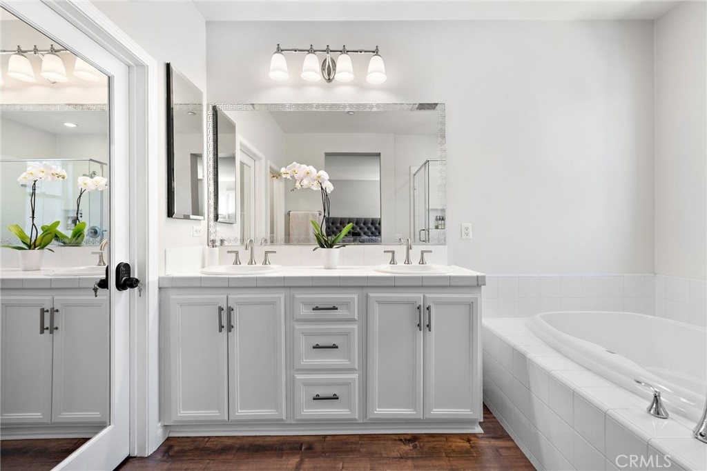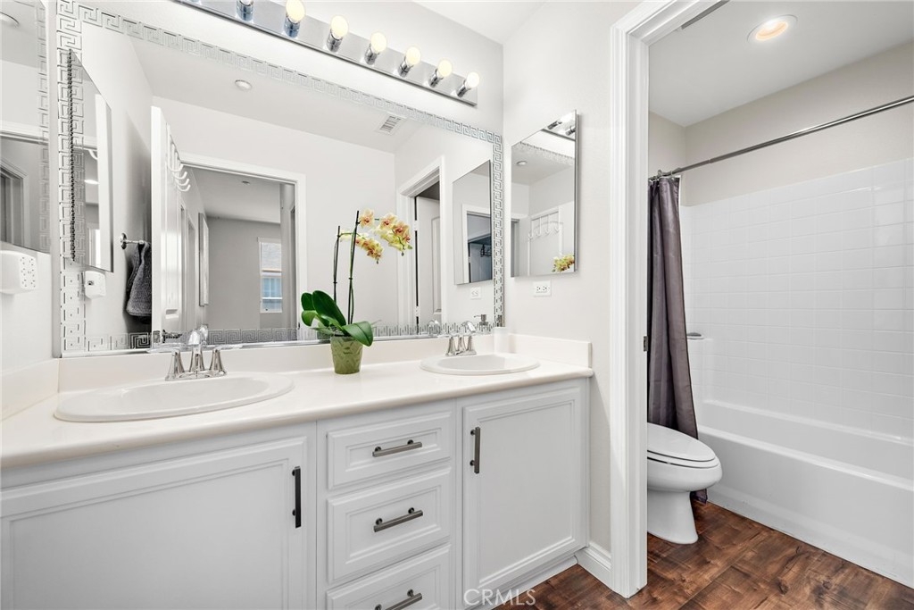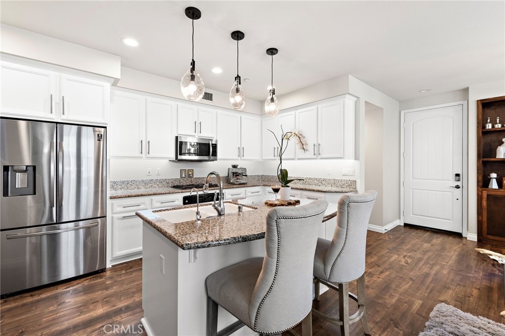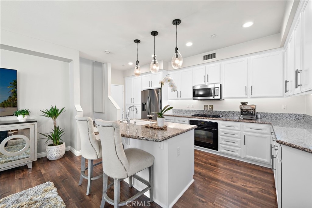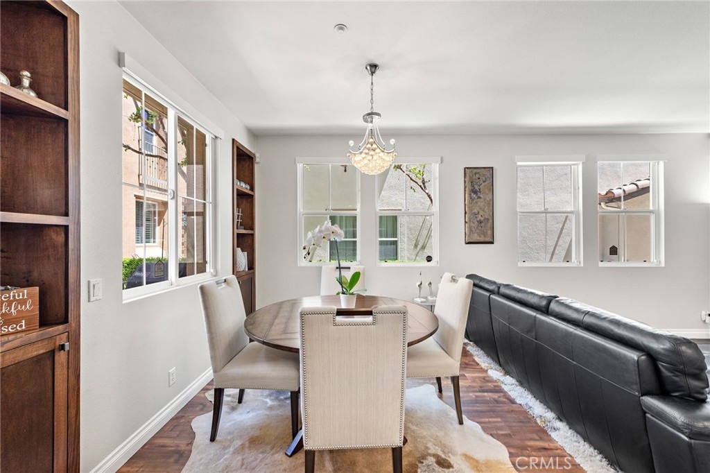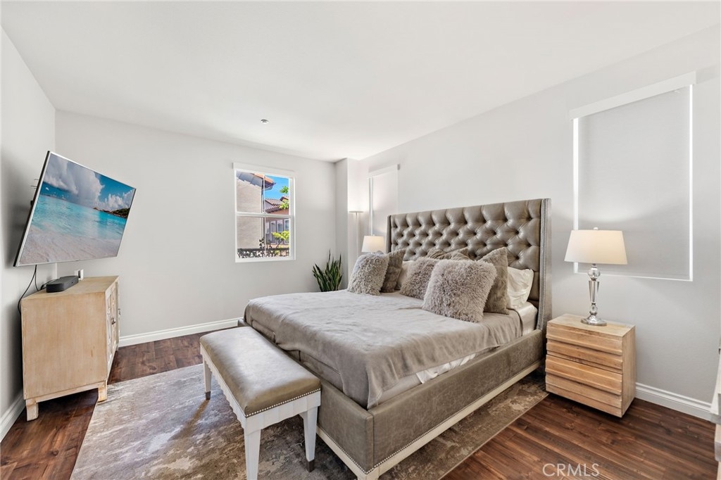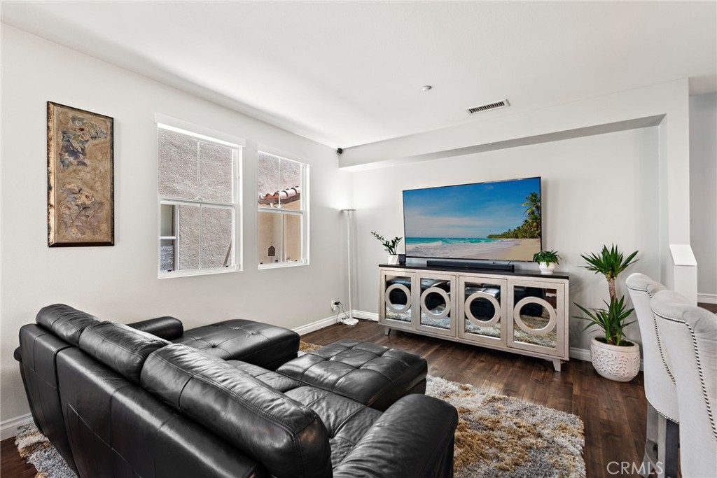 Discover style, comfort, and convenience in this beautifully upgraded 3 bedroom, 2.5 bath end unit townhome located in the desirable Harbor Station neighborhood of Aliso Viejo. With 1,631 sq ft of thoughtfully designed living space, this turnkey home is move-in ready and filled with high end touches throughout. Step inside to discover timeless wood flooring, designer interior paint, custom built-in shelving with accent lighting, and an abundance of natural light streaming through numerous windows—each outfitted with smart blinds and remotes for effortless ambiance. The oversized kitchen island is the centerpiece of the open-concept living area, complemented by modern and sleek appliances and plenty of counter space for cooking and entertaining. Upstairs, a versatile loft area features a built-in desk with drawers and cabinets—ideal for a home office or study space. The spacious primary suite includes an oversized walk-in closet and a beautifully appointed en-suite bath with walk in shower and separate soaking tub. On this level, you will also find two additional generously sized secondary bedrooms, secondary bathroom will dual vanities, and an upstairs laundry room for extra convenience. Additional highlights include a spacious 2-car attached garage with direct access, smart garage door system, multiple custom storage cabinets, and a Tesla charging station—ideal for modern living. Residents enjoy access to the Aliso Viejo Aquatic Center featuring a recreational pool, lap pool, kids splash pad and spa. This amazing neighborhood is also home to multiple nearby parks for the kids and just steps away from the Aliso Viejo Country Club with its 19-hole Jack Nicklaus-designed golf course. Just minutes from the Aliso Viejo Town Center with endless shopping, dining, and entertainment options, top-rated schools, and major commuter routes including the I-5, I-405, and 73 Toll Road—this home offers the perfect blend of convenience and community.