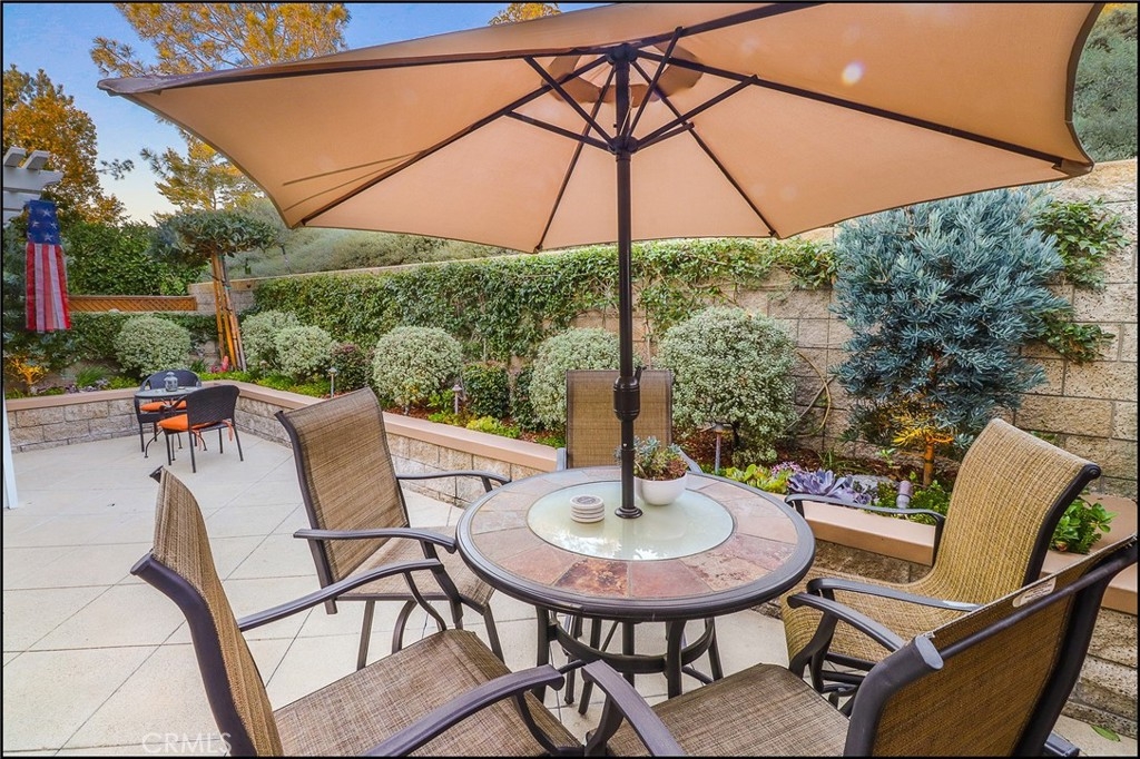 EXCEPTIONAL CANYON VISTAS LOCATION PERFECTLY SITUATED ON THE PERIMETER OF THE HIGHLY SOUGHT AFTER HARVEST TRACT WITH VIEW OF LUSH GREENBELTS, ADDED PRIVACY, AMAZING YARD WITH OUTDOOR LOUNGE AND DINING AREAS AND SPECTACULAR UPGRADES THROUGHOUT! Awesome curb appeal with well manicured landscaping and stone accented walkway leading to the front door, which unveils the foyer and large living room with two-story ceiling and stack stone accented fireplace with custom wrought iron fireplace door. The dining room opens to the stunning kitchen with designer Quartz countertops, lots of cabinets, upgraded appliances and French sliding door to the inviting patio with upgraded alumiwood cover, perfect for outdoor entertainment, lounging and outdoor dining. The amazing backyard is overlooking the lush greenbelts and no one directly behind for added privacy, custom hardscaping featuring stone accents, planters and seating walls, newer lush landscaping with a drip irrigation system and landscape lighting, separate left rear yard and large side yard. Upgraded Milgard tempered glass windows throughout, custom beveled glass accent windows, newly upgraded flooring and neutral paint throughout, newer water heater and LG High Efficiency washer and dryer included, upgraded bathrooms including the newly remodeled master bathroom with soaking tub, whole house fan and PEX repiping. All this plus, a very desirable Canyon Vistas location offering highly sought after schools, easy toll road (73) and beach access (via 133), excellent proximity to Aliso Viejo Town Center and nearby Canyon View park and recreation, and hiking, biking and nature trails!