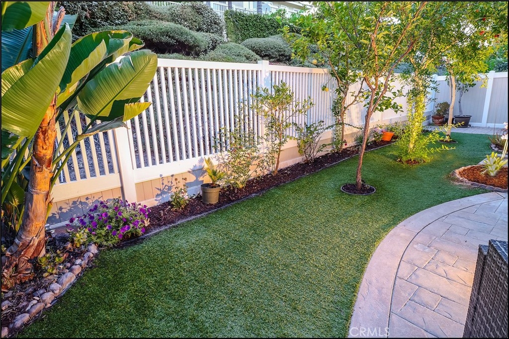 AWESOME CANYON VISTAS LOCATION STEPS AWAY FROM CANYON VIEW PARK! PERFECTLY SITUATED IN THE BACK OF THE TRACT ON A SINGLE LOADED STREET, DETACHED HOME WITH OPEN FLOOR PLAN, HIGH CEILINGS AND AWESOME YARD FEATURING LARGE PATIO, LAWN AREA, FRUIT TREES AND VIEW OF LUSH GREENBELTS! This awesome property is located in the desirable Harvest community within the highly sought after Canyon Vistas and features an open floor plan with living and dining room offering two-story ceilings, a spacious kitchen with large windows overlooking the yard with lush landscaping, large center island, stone countertops, self-closing drawers, upgraded appliances, and it opens to the family room with fireplace and entertainment niche. Sliding glass door leads to the inviting backyard with a large patio area perfect for entertaining and those weekend bbqs! Upgraded flooring and tall baseboards, upgraded lighting fixtures, recessed lights and ceiling fan light fixtures. Second story hallway features ample linen cabinets and a conveniently located inside laundry room with additional linen cabinets. Master suite with large walk-in closet and large master bathroom features separate tub and shower, and large vanity with dual sinks. Award winning schools, easy toll road (73) and beach access (via 133), excellent proximity to Aliso Viejo Town Center and nearby hiking, biking and nature trails!
