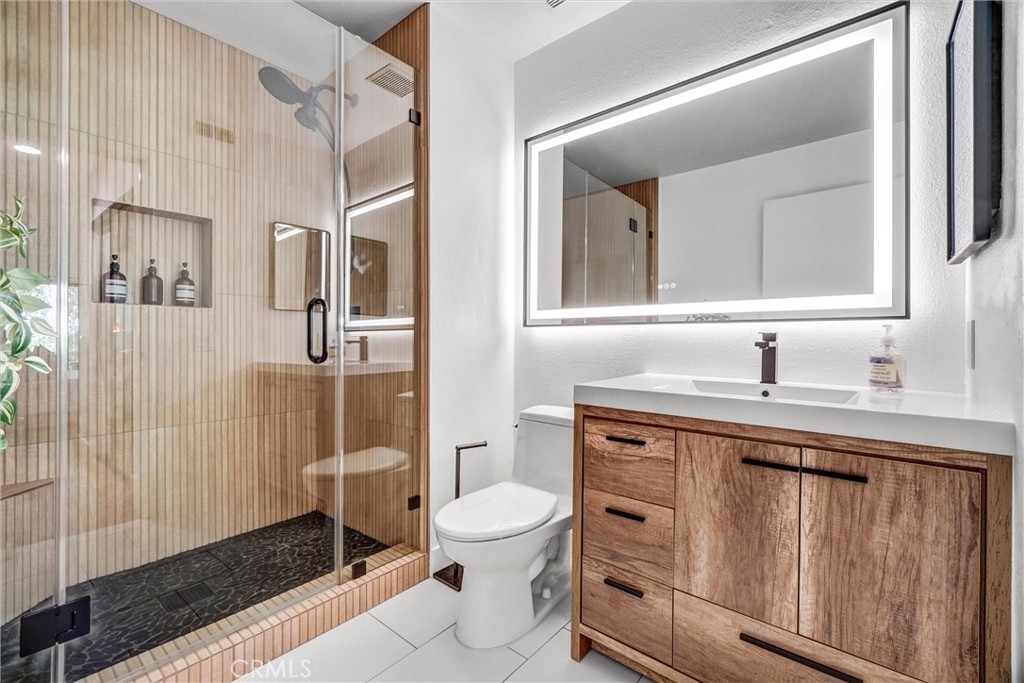 Come ENJOY 15 Abbey Lane in the Heather Ridge development within WONDERFUL Aliso Viejo! Located only 8 miles from world-famous Laguna Beach! This is an AMAZING 1ST Floor townhome-style unit with 2 big bedrooms, 2 bathrooms, and a host of UPGRADED features! These include New water softener system, Remodeled primary and guest bathrooms, Upgraded Fireplace in spacious Living Room, New garage storage racks, New Soft-close hinges installed on all kitchen cabinets, AC unit fully serviced 3 months ago, Remodeled and Updated Large Backyard landscape with maintenance-free turf, Mature Peach tree in backyard, and a 7 minute walk on paved walking trail to shopping center with grocery, restaurants, & coffee shops. There is access to the Community Pool, 2 community hot tubs, and tennis courts! The Monthly HOA fee covers your water + trash bills. This home has been thoughtfully updated with new paint and flooring throughout. It shouts PURE ELEGANCE when you see it! This is an END UNIT with a very Spacious Private Patio great for relaxing or entertaining. The location is Private and so RELAXING! Interior laundry area and The Primary Bedroom is a sanctuary with direct access to the private patio. It boasts a walk-in closet and ample storage for all your belongings. The secondary bedroom also offers its own private patio, providing a personal outdoor space for relaxation or quiet contemplation. It's the perfect spot to enjoy a morning coffee or unwind after a long day. Situated in Aliso Viejo, this HOME offers a prime location with easy access to shopping, dining, and entertainment options. Enjoy the convenience of nearby parks, trails, and recreational facilities, allowing you to embrace your desired lifestyle. There is also a 1 car garage with storage racks and water hose access. FHA approved project! Don't miss the opportunity to make 15 Abbey Lane your new home!