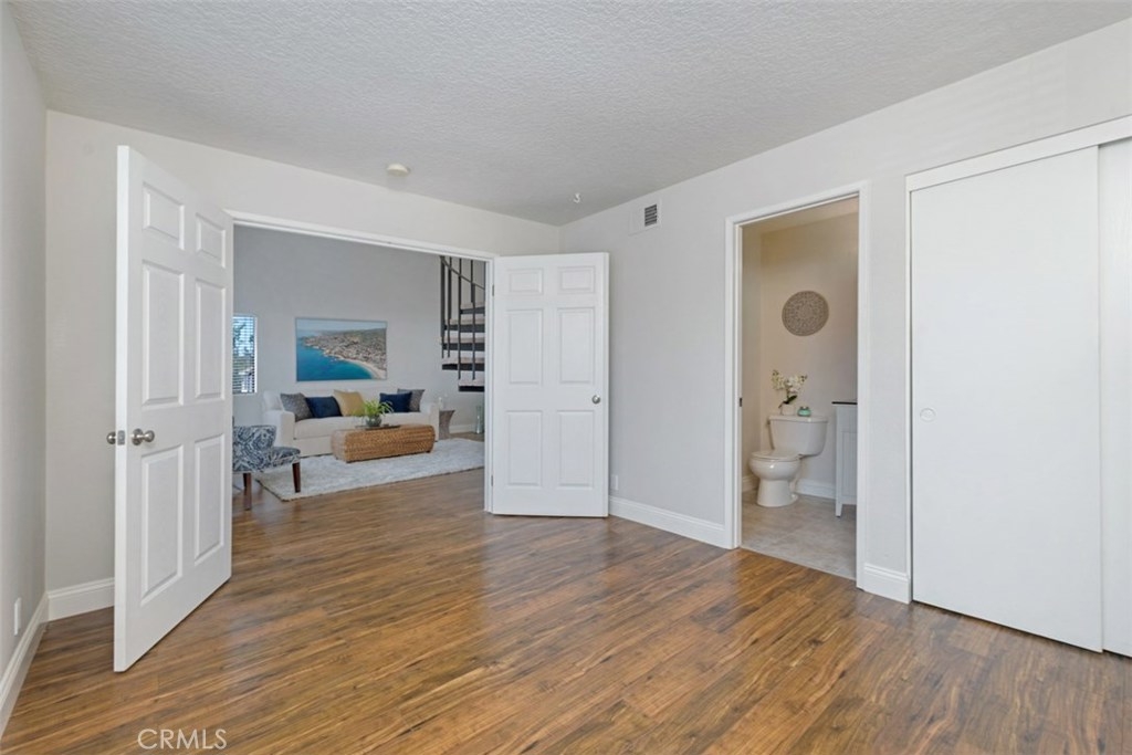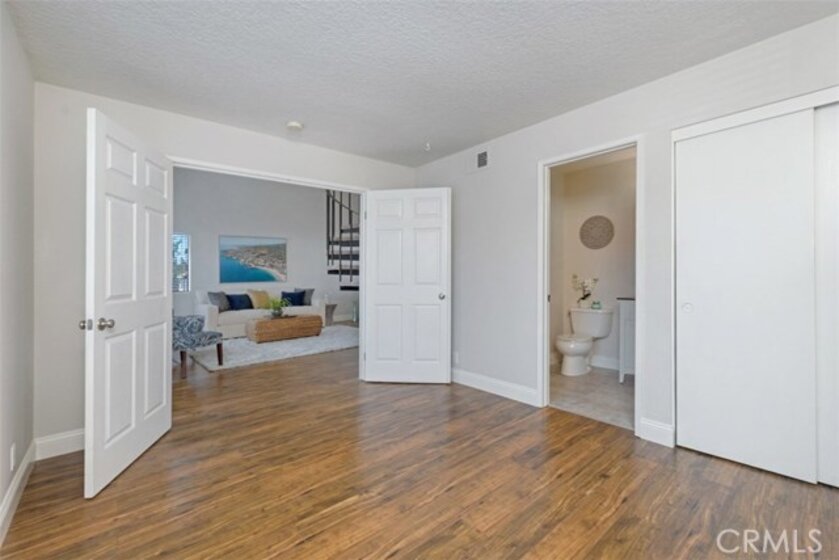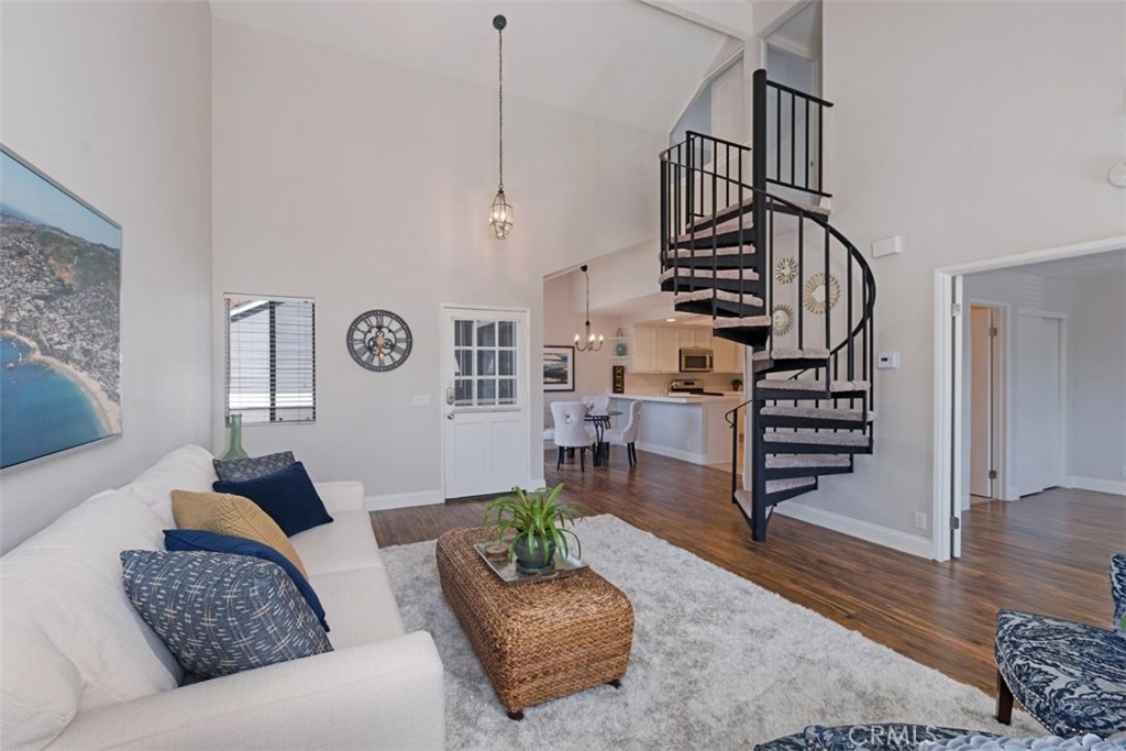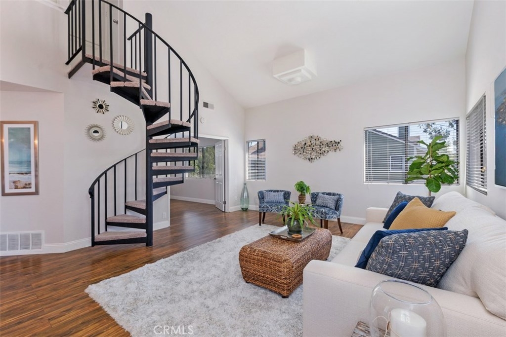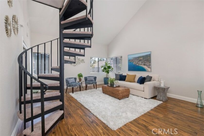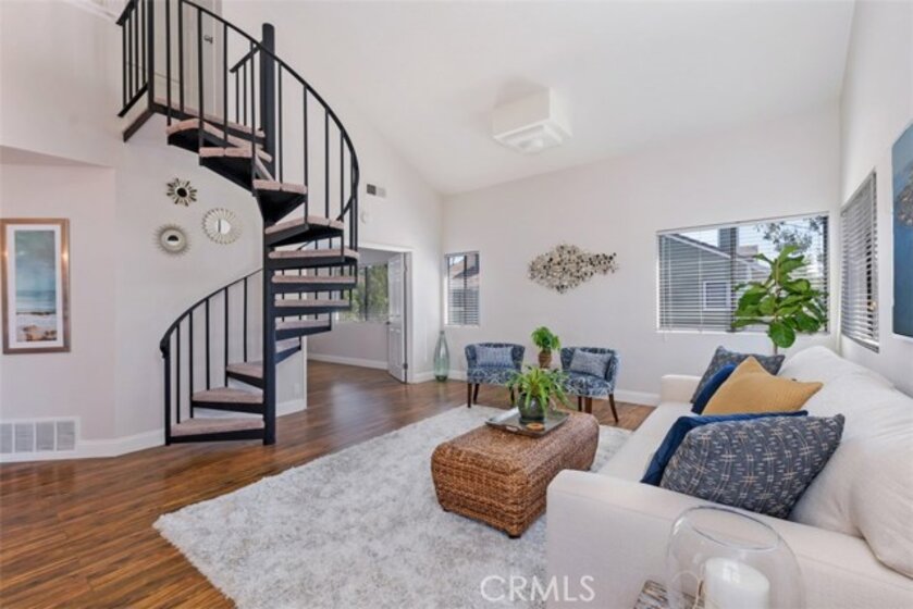 Rarely on the market, this charming 2 story, 2 bedroom, 2 bathroom, corner upper level carriage unit boasts a spacious open concept floor plan featuring vaulted ceilings, open kitchen and generous great room. Take the spiral staircase up to the private master bedroom with tons of closet space and remodeled full bathroom complete with new tile flooring and new vanity. Dual French doors open up to the large 2nd bedroom as well as a private bathroom with new tile flooring, new vanity and shower. This home also includes a one car garage with plenty of extra storage space as well as a large private patio. Enjoy the amenities that Heather Ridge offers which include 2 spas, 2 tennis courts, BBQ area, a swimming pool, and abundant unrestricted parking plus low association fees and no mello roos.