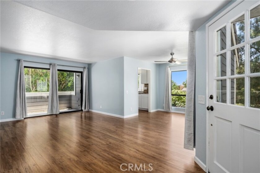PRICE IMPROVEMENT on this amazing two bedroom, END unit in the very desirable Heather Ridge community. This lovely upstairs condo is located in an extremely private area of the complex. With FRESH PAINT, NEW CARPET, NEW LAMINATE, BRAND NEW STOVE, BRAND NEW A/C UNIT, (A/C just installed in June and comes with a 5 year warranty!). This fabulous Aliso Viejo property is move in ready! New owners have a blank canvas ready for their own customization! The spacious master bedroom is equipped with a full sized closet and NEW CARPET. The full bathroom is positioned perfectly between both bedrooms with an additional separate vanity. The secondary bedroom is also good sized with bright lighting and NEW CARPET! The functional and bright kitchen has RECESSED LIGHTING as well as FRESH PAINT and a NEW GAS STOVE! Adjacent to the kitchen is the indoor laundry area equipped with washer and dryer! Off the living area is a sliding glass door opening up to an outside deck, perfect for a quiet morning coffee or a nice evening glass of wine or barbecue. The Heather Ridge monthly HOA dues cover water and trash. A one car garage situated close to the unit is also a major plus! There is No Mello Roos! The Heather Ridge community offers a friendly atmosphere with generous guest parking amongst beautifully landscaped grounds. This is a serene and perfect place to call home centered around excellent schools, restaurants, shopping, safe neighborhoods and easy freeway access. This gem will not last long! A lovely place to call home!