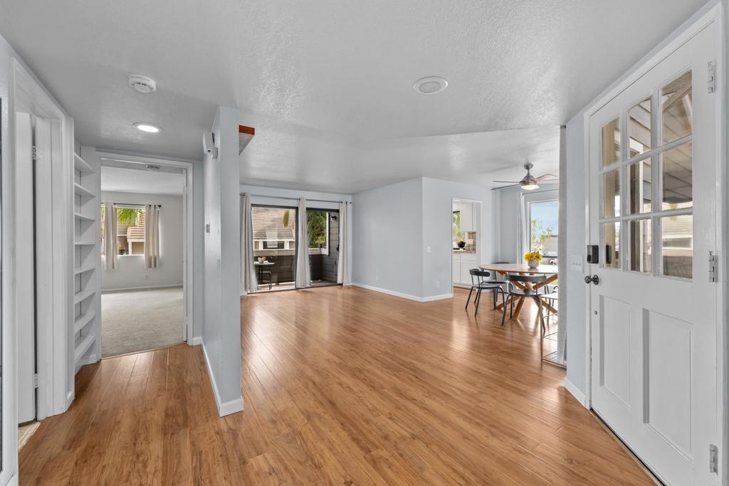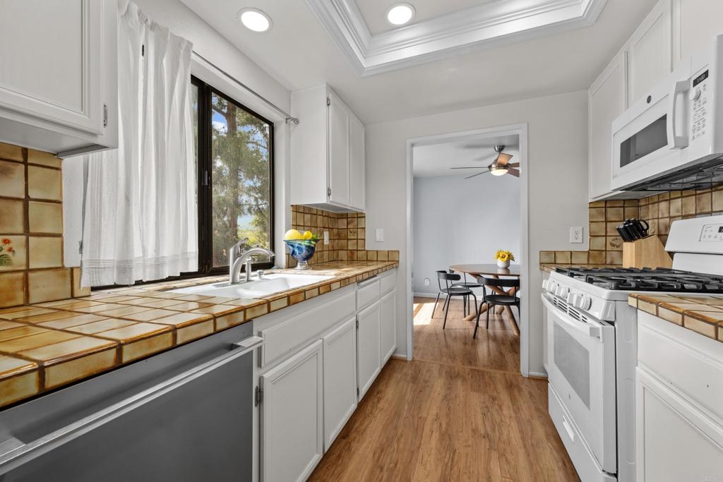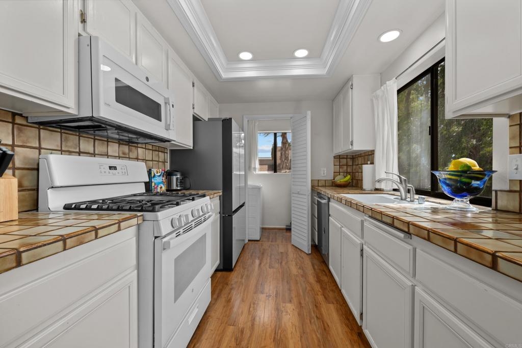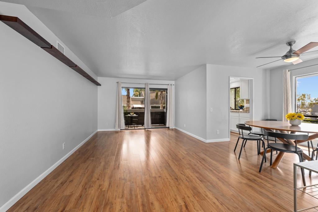 Welcome to this fantastic, move-in-ready 2-bedroom END UNIT in the highly sought-after Heather Ridge community of Aliso Viejo! Perfectly positioned in a serene and private corner of the complex, this upstairs condo offers a bright and inviting atmosphere, complete with newer carpet in the bedrooms and stylish laminate flooring in the living and dining areas. With a brand-new A/C (only 2 years old), this home is ready to keep you comfortable year-round! Step into the spacious master bedroom, featuring a generous full-sized closet, and enjoy the convenience of a full bathroom ideally located between both bedrooms, with an additional separate vanity. The second bedroom is just as roomy, providing endless possibilities. The functional kitchen boasts recessed lighting and flows seamlessly into the indoor laundry area, complete with washer and dryer. Relax in your cozy living room, and step through the sliding glass doors to your own private outdoor deck, perfect for enjoying a morning coffee or an evening glass of wine while soaking in the tranquility of your surroundings. The Heather Ridge community is not only beautifully landscaped but also offers fantastic amenities, including a pool, tennis courts, and low HOA dues that cover water and trash. Plus, there’s a one-car garage located just steps away from your front door! No Mello-Roos here—just a wonderful opportunity to live in a prime location surrounded by top-tier schools, restaurants, Costco, Target, and coffee shops plus easy freeway access. With generous guest parking and a friendly, well-maintained community, this charming condo is truly a hidden gem. Don’t wait—this opportunity won’t last long! Make it yours today and start living the dream!